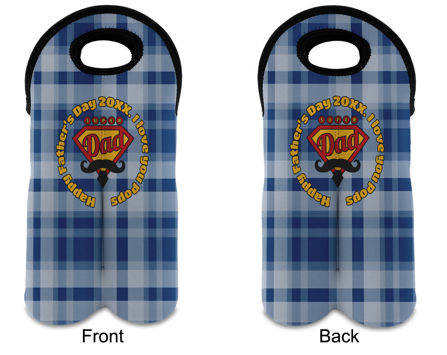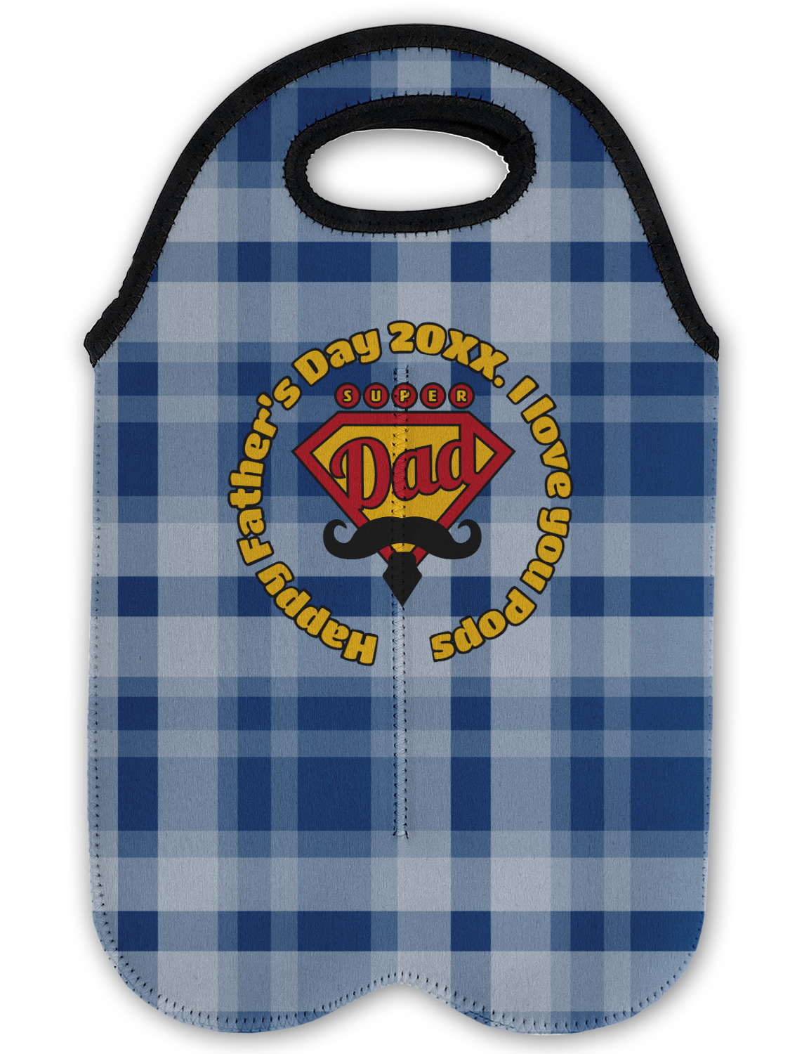 This design is perfect for the Hipster Dad. We chose a blue plaid background with a graphic & text personalization style. We chose the super dad graphic with a mustache & tie in traditional red and yellow. We added "Happy Father's Day 20XX. I Love You Pops" for our text. You can create the perfect father's day gift with this design!