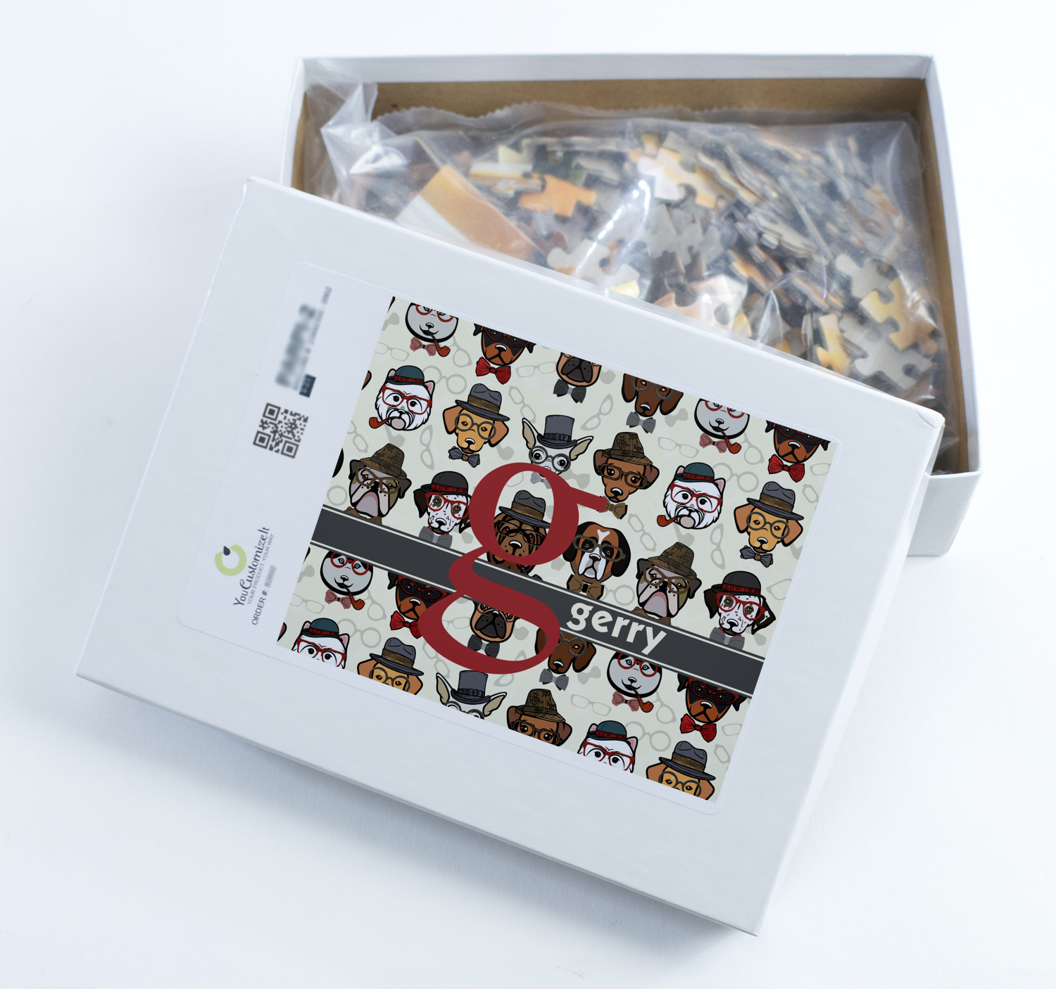 Depending on the look you are trying to achieve, you can add; a thematic pattern or background, with a photo in a frame and text or personalization to your puzzle. Basically if you can imagine it, you can design it!