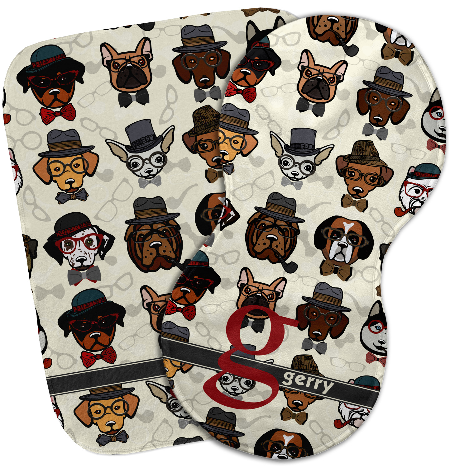 This hipster dogs design is a HIPSTER! We have faces of hipster dogs on a background of eyeglass frames, pipes and bowties. The background is re-color-able and so we chose a light cream background. The hipster dogs are wearing hats, glasses, wearing bow ties and some are smoking a pipe.