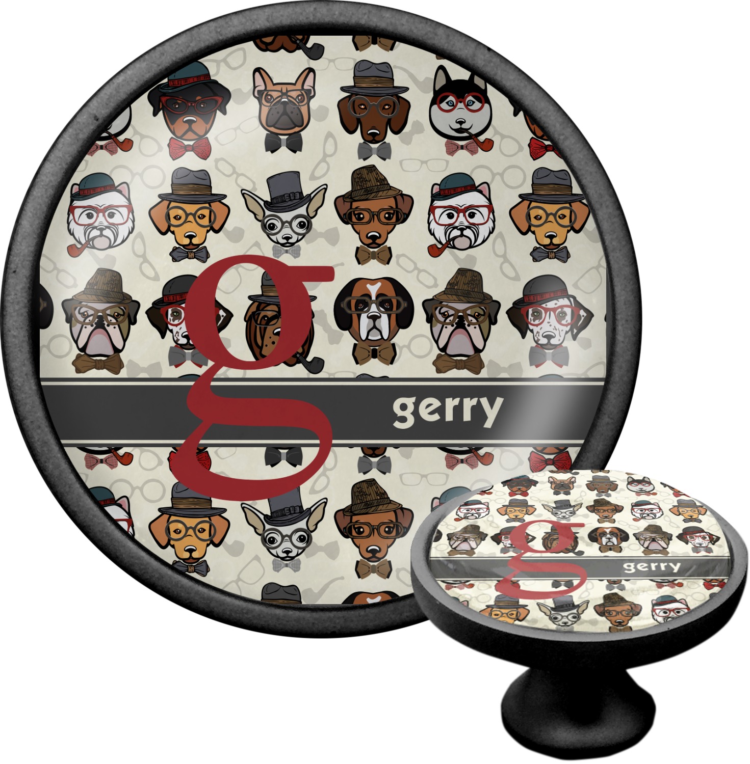 We sell these cabinet pulls in two different colors to better match your room's color scheme. We offer an oil-rubbed bronze base that is black in color, and a satin nickel option, which has a silver color. Your design is displayed across a high gloss vinyl insert that is placed on top of these cabinet handles. We then place a 1 inch thick glass cabochon atop the design, which seals the cabinet knob and makes the colors of your customization stand out. These custom cabinet knobs are approximately 1.3 inches in diameter. Your purchase includes a 1 inch screw that can be used to mount the knob to any cabinet in your home.