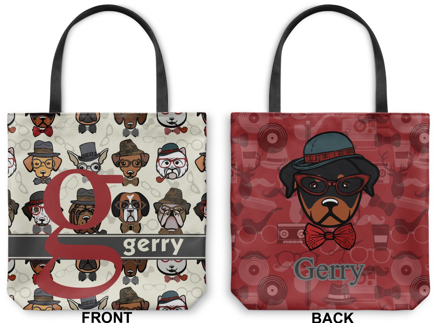 Our totes are made right here in the USA. Your design is printed on canvas fabric; the fabric is then cut and sewn on the sides and on the bottom to add an approximately 3.5 inch gusset. Black cotton handles are sewn in and reinforced. Your tote has a designs on both sides - the designs can be the same or different - the choice is yours. The inside of the tote has a black fused lining.