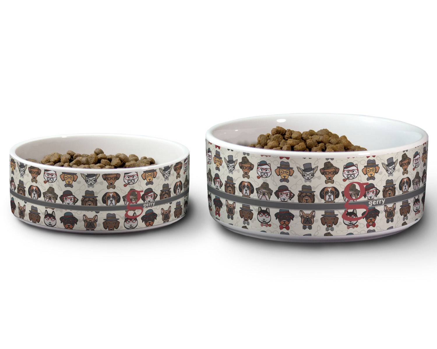 Our customized, ceramic dog bowls allow you to fashion a durable, yet expressive gift for your pet. These bowls are fashionably versatile; they suit both cats and dogs and can hold either food or water. Add your pet's name or favorite color to the design, and spruce up his/her eating area with one or two personalized pet bowls!