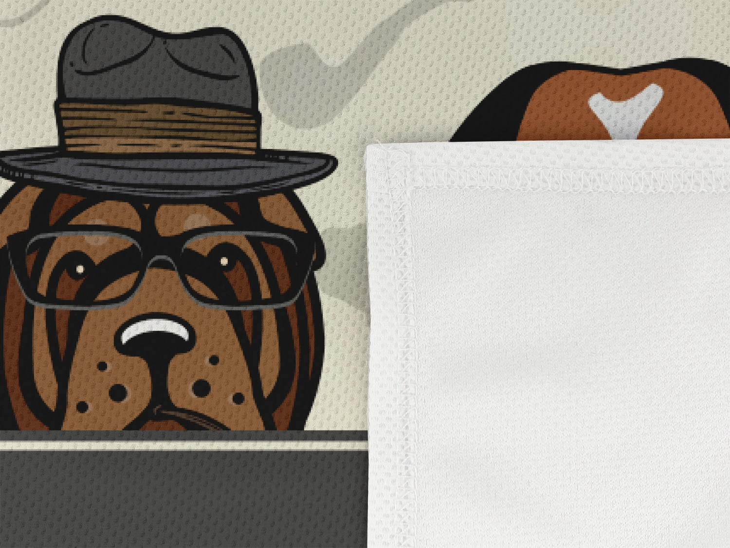 This hipster dogs design is a HIPSTER! We have faces of hipster dogs on a background of eyeglass frames, pipes and bowties. The background is re-color-able and so we chose a light cream background. The hipster dogs are wearing hats, glasses, wearing bow ties and some are smoking a pipe.