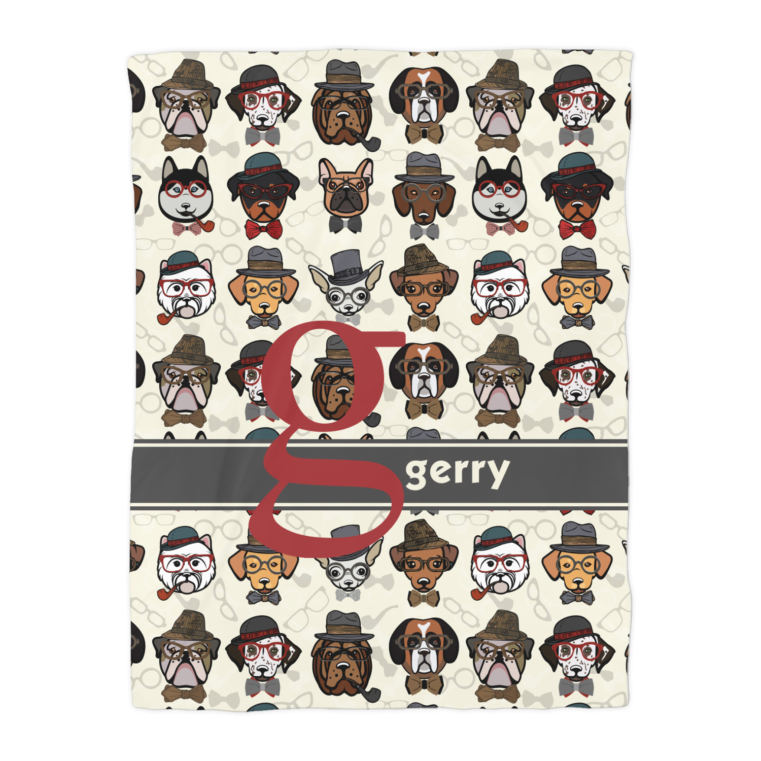 This hipster dogs design is a HIPSTER! We have faces of hipster dogs on a background of eyeglass frames, pipes and bowties. The background is re-color-able and so we chose a light cream background. The hipster dogs are wearing hats, glasses, wearing bow ties and some are smoking a pipe.