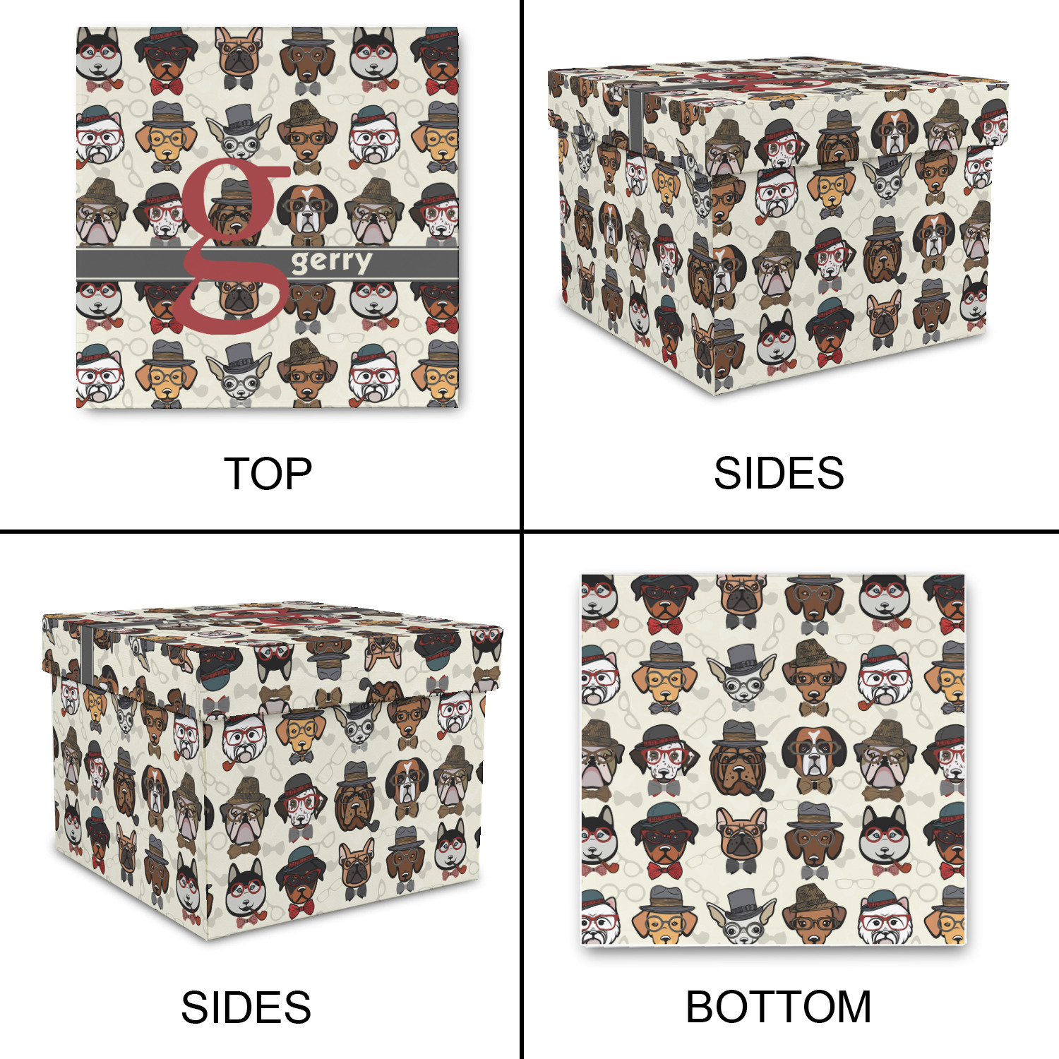 This hipster dogs design is a HIPSTER! We have faces of hipster dogs on a background of eyeglass frames, pipes and bowties. The background is re-color-able and so we chose a light cream background. The hipster dogs are wearing hats, glasses, wearing bow ties and some are smoking a pipe.