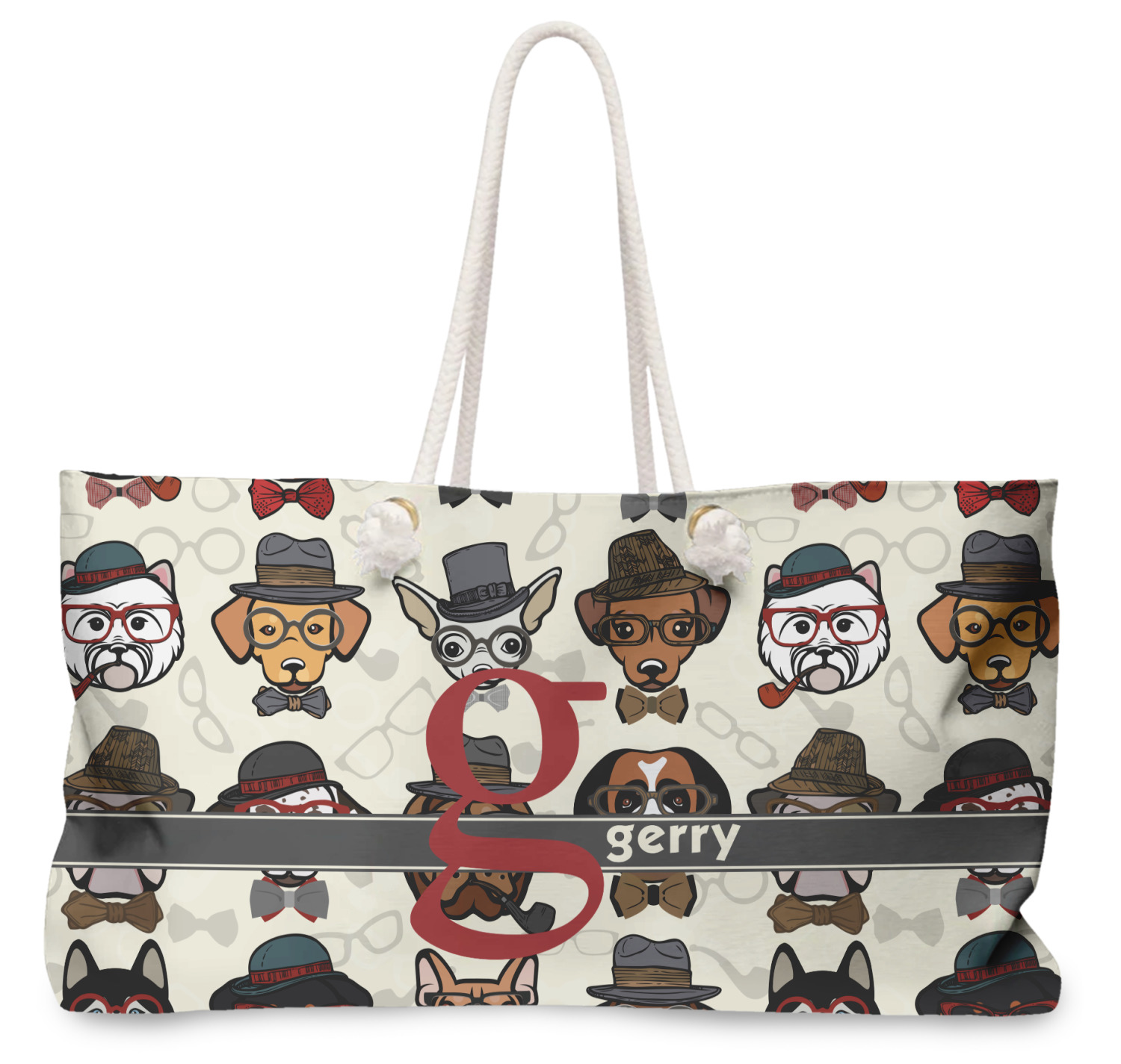 Our oversized weekender tote with rope handles is perfect for your weekend at the beach or on the town. This large tote are 24" W X 13" H, with a 5" gusset and a 27" thick rope handles with a knot that is put through a grommeted brass hole.