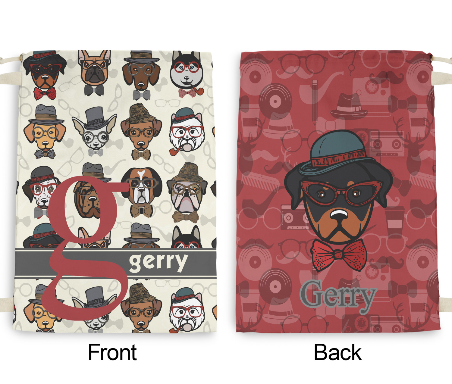 Carry your laundry in style with these customized laundry bags. Available in two sizes, featuring a natural colored woven strap and a cinch cord, these bags hold a lot of clothes or anything else you want to fit in them.