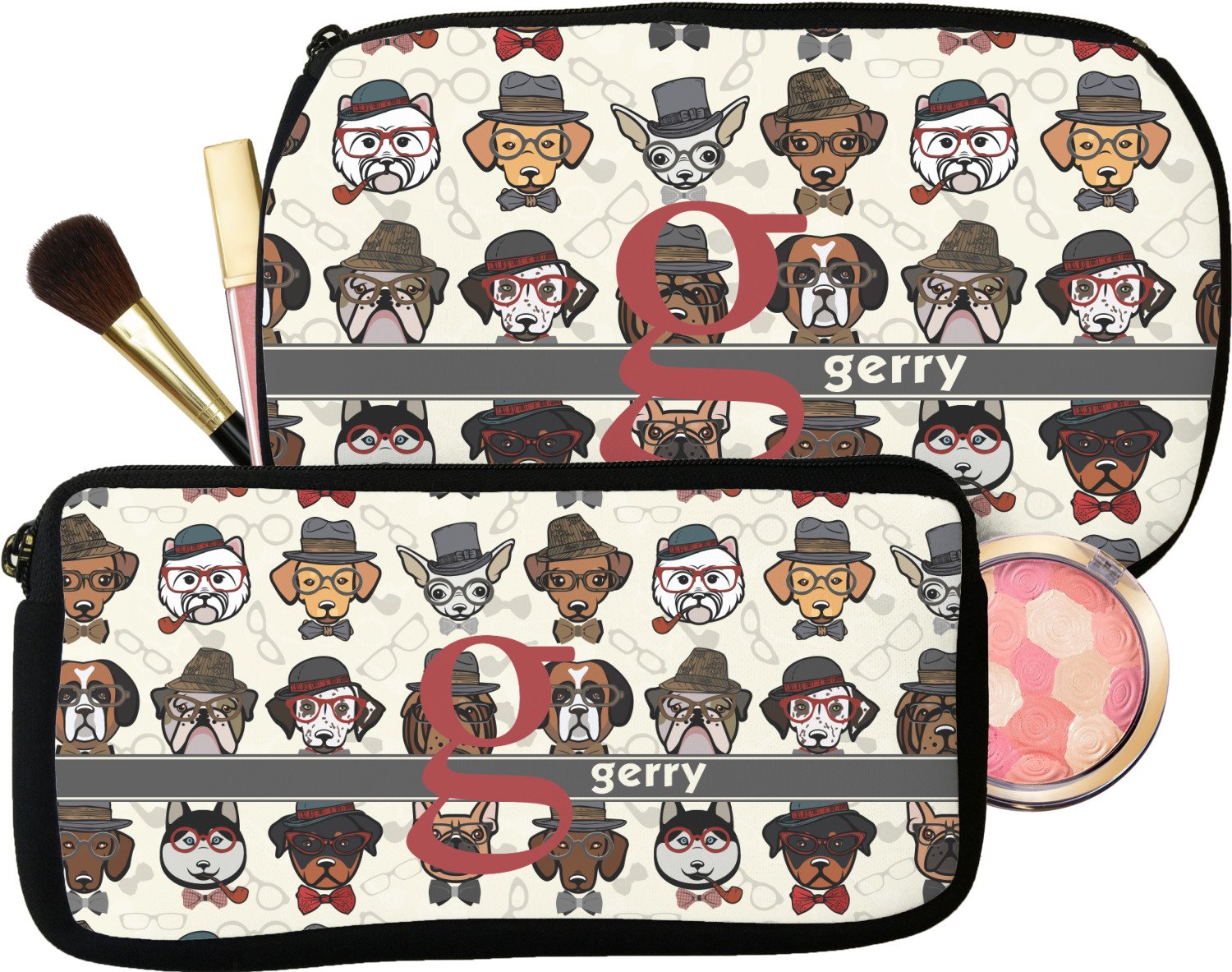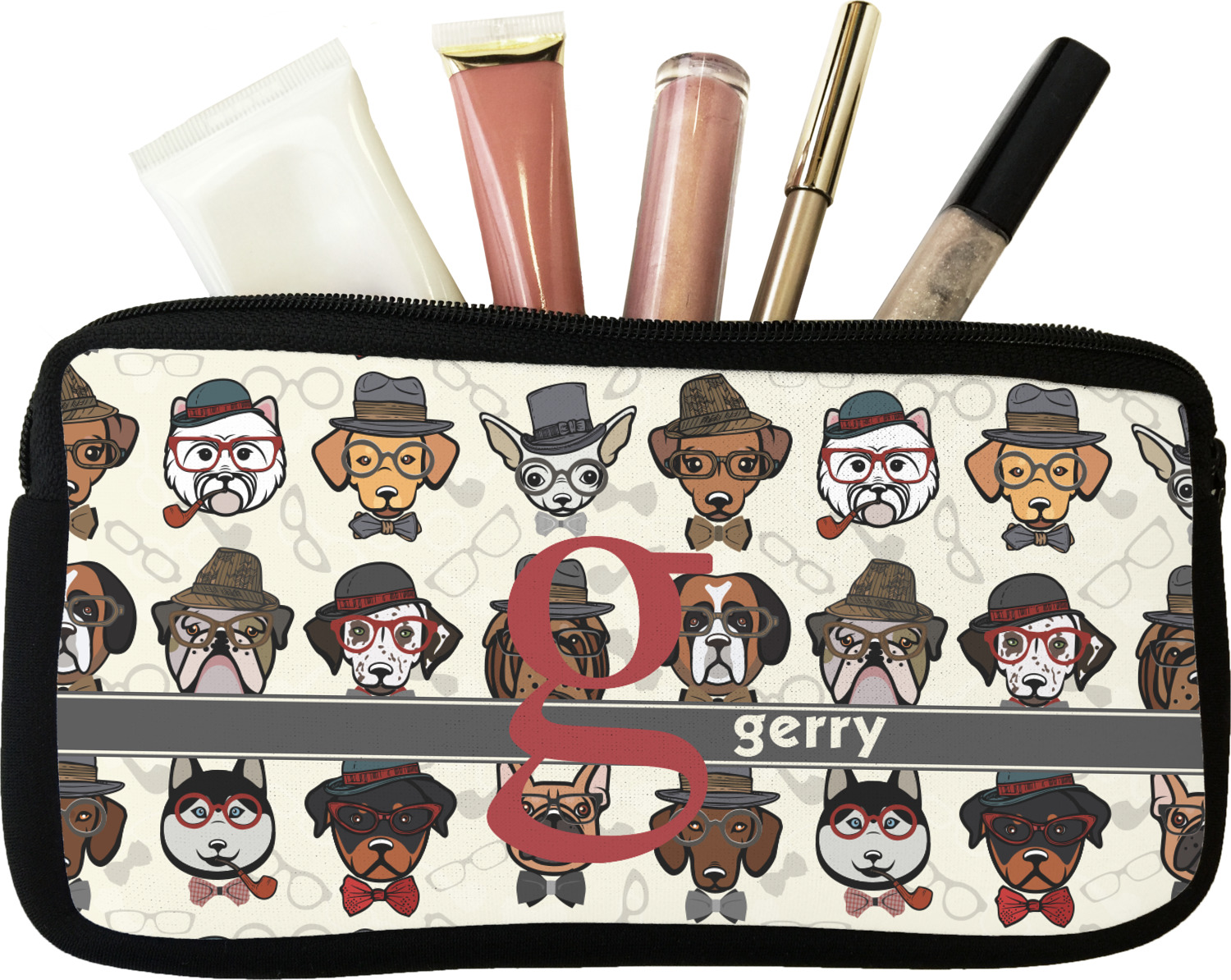 Our personalized makeup bags are available in many different designs, patterns and colors - so you are sure to find one that will love. They are made of neoprene (same material as wet-suits) and thus are water resistant, so spillages in your makeup bag will not end up all over you purse. They are customized on one side and are black on the other side and the zipper is black as well.