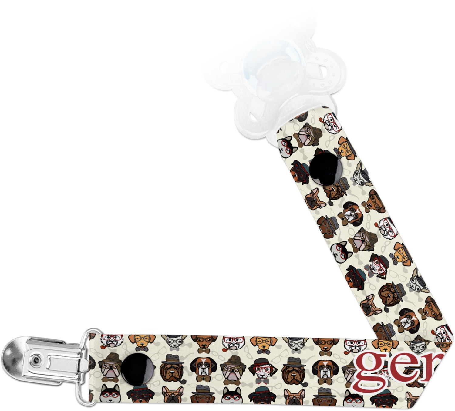 This personalized pacifier clip is the ideal size and measures at approximately 7.5 inches in length, when either end is snapped closed. On one end, you'll find a snap button. This button of your baby's pacifier holder is what can be attached to their pacifier to hold is securely in place. Simply open the snap, slip it through the pacifier opening, and snap it back into place. On the opposite end of this baby pacifier holder, you'll find a metal clip that can secure to a baby's collar or sleeve. This clip ensures that the strap stays in place, and that your baby's pacifier is always on hand.