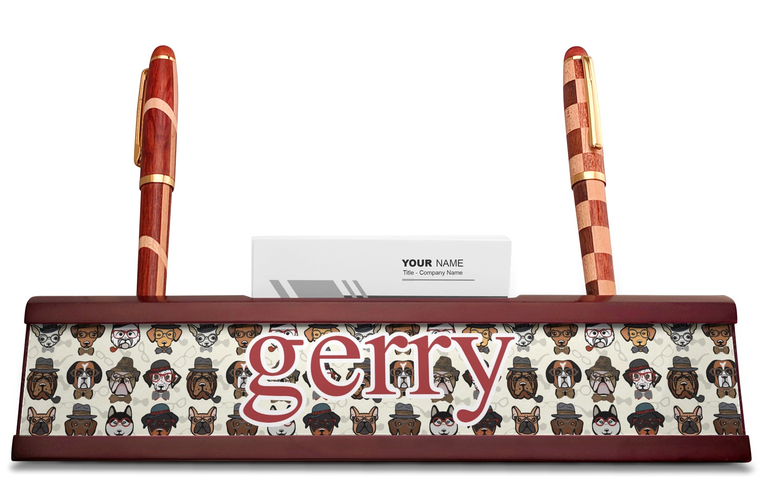 Your desk name plates are crafted from a high-quality, dark-cherry mahogany. At approximately 9.5 by 1.875 by 2.5 inches, this name plaque will fit perfectly, front and center, on your desk. Your customization spans across the entire face of the nameplate. Behind the nameplate lies a skinny slot that can fit approximately 15, traditionally-sized, business cards. You can also store your writing utensils on either side of this custom desk name plate.