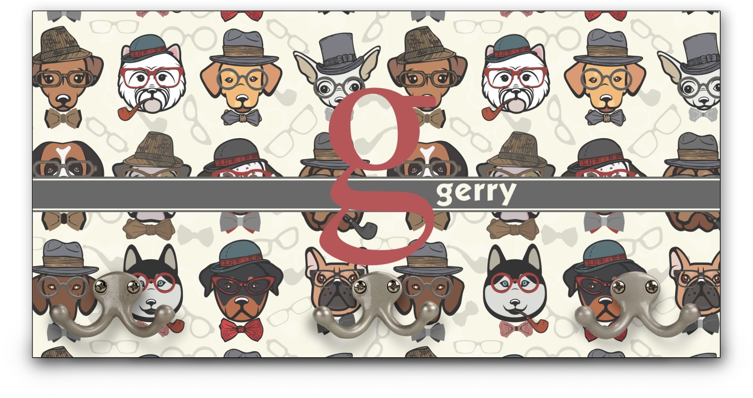 This coat rack is the perfect way to add some personality to your wall or entryway. The board is made of a strong maple that is approximately 16" x 8". The three 2-prong hooks are a sturdy metal that have three screws attaching them to the board. Your design is printed right onto the front of the board while the back and sides are a simple black.