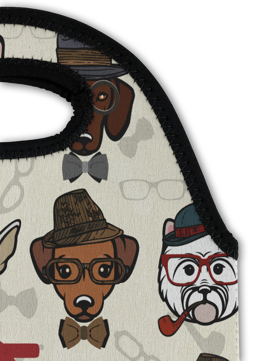This hipster dogs design is a HIPSTER! We have faces of hipster dogs on a background of eyeglass frames, pipes and bowties. The background is re-color-able and so we chose a light cream background. The hipster dogs are wearing hats, glasses, wearing bow ties and some are smoking a pipe.
