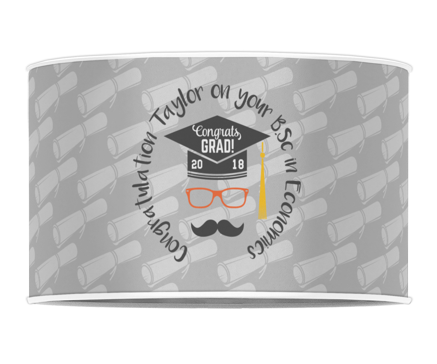Our personalized drum lamp shades are available in 2 different materials: Poly-film or fabric. Poly-film lamp shades come with the option of white or black border trims to best match your customized design. Fabric lamp shades are finished with a rolled edge for a clean modern look.