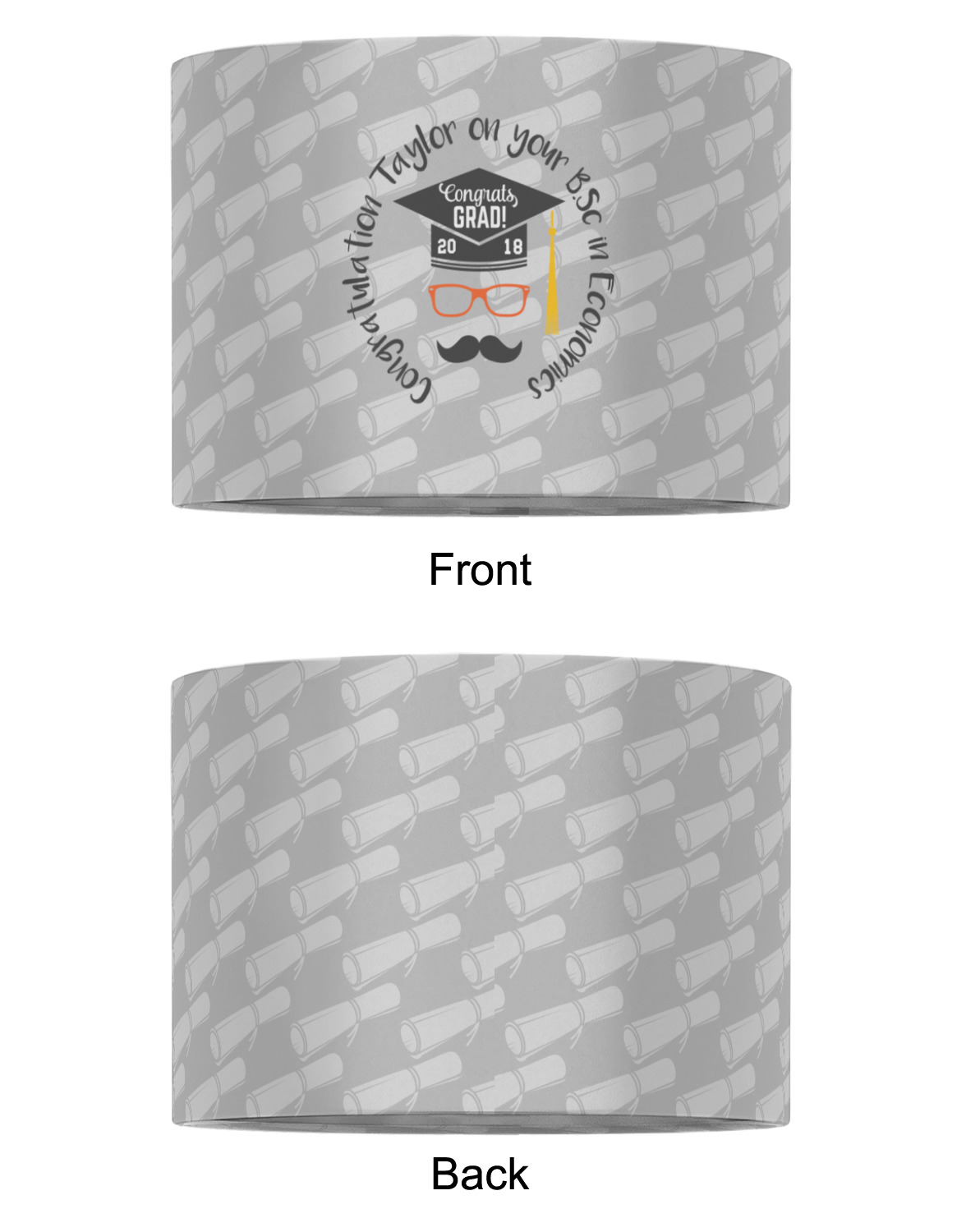 This whimsical and fun design makes the perfect graduation gift. We chose a tone on tone background with graduation scrolls and chose a light grey color. We chose graphic with circular text for our personalization style; change the text to suit your graduate. Customize the colors in the hipster graphic including the glasses, tassel and mustache color. We have other graduate backgrounds as well as graduate graphic in our system. So go ahead and change things to suit your graduate.