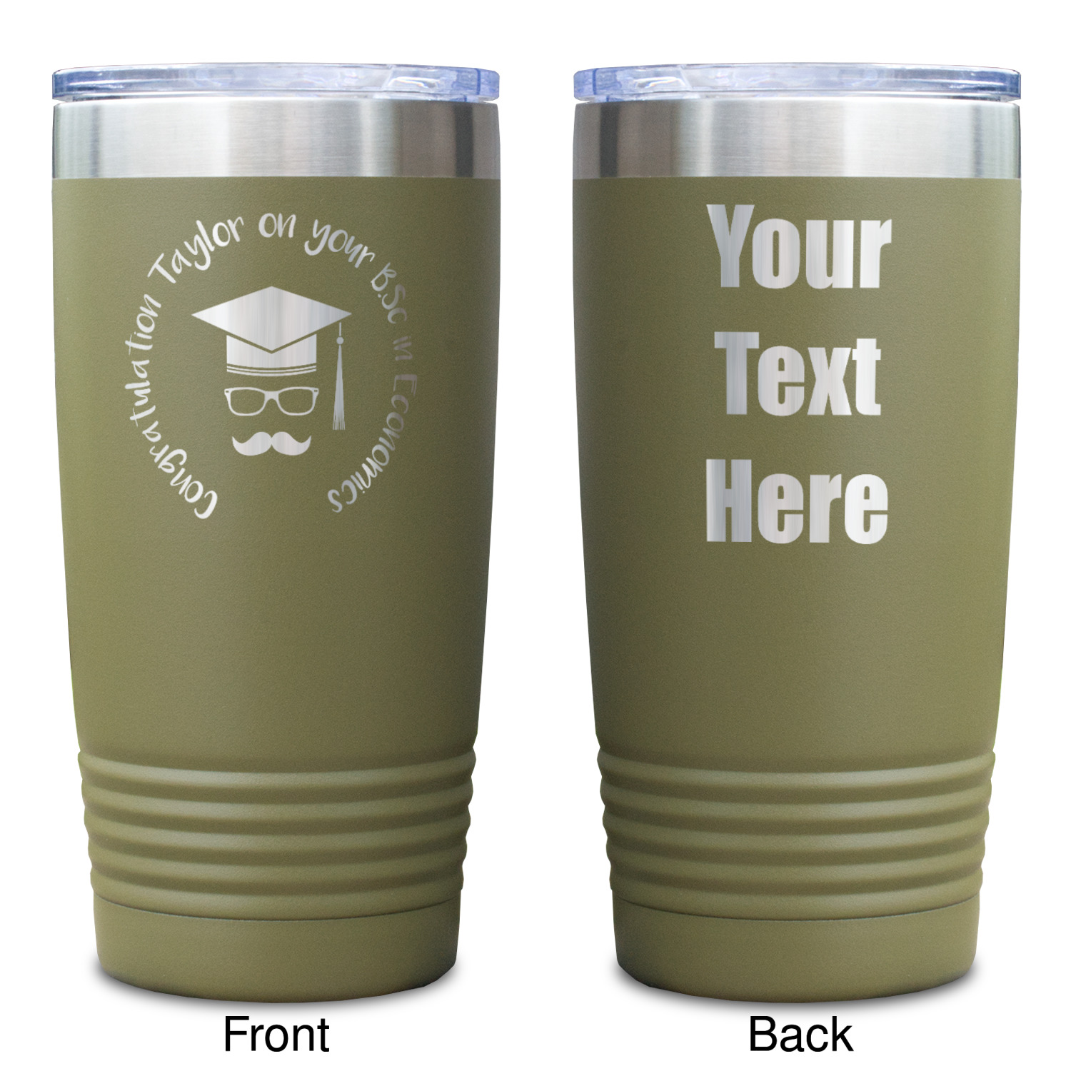With our personalized 20 oz double wall stainless steel tumblers, you'll never have to settle for a plain, boring tumbler again! These tumblers will be a wonderful addition to your drinkware collection and will make those long commutes much brighter. Personalize one for yourself, or give these personalized tumblers as a gift to relatives, friends, or coworkers!