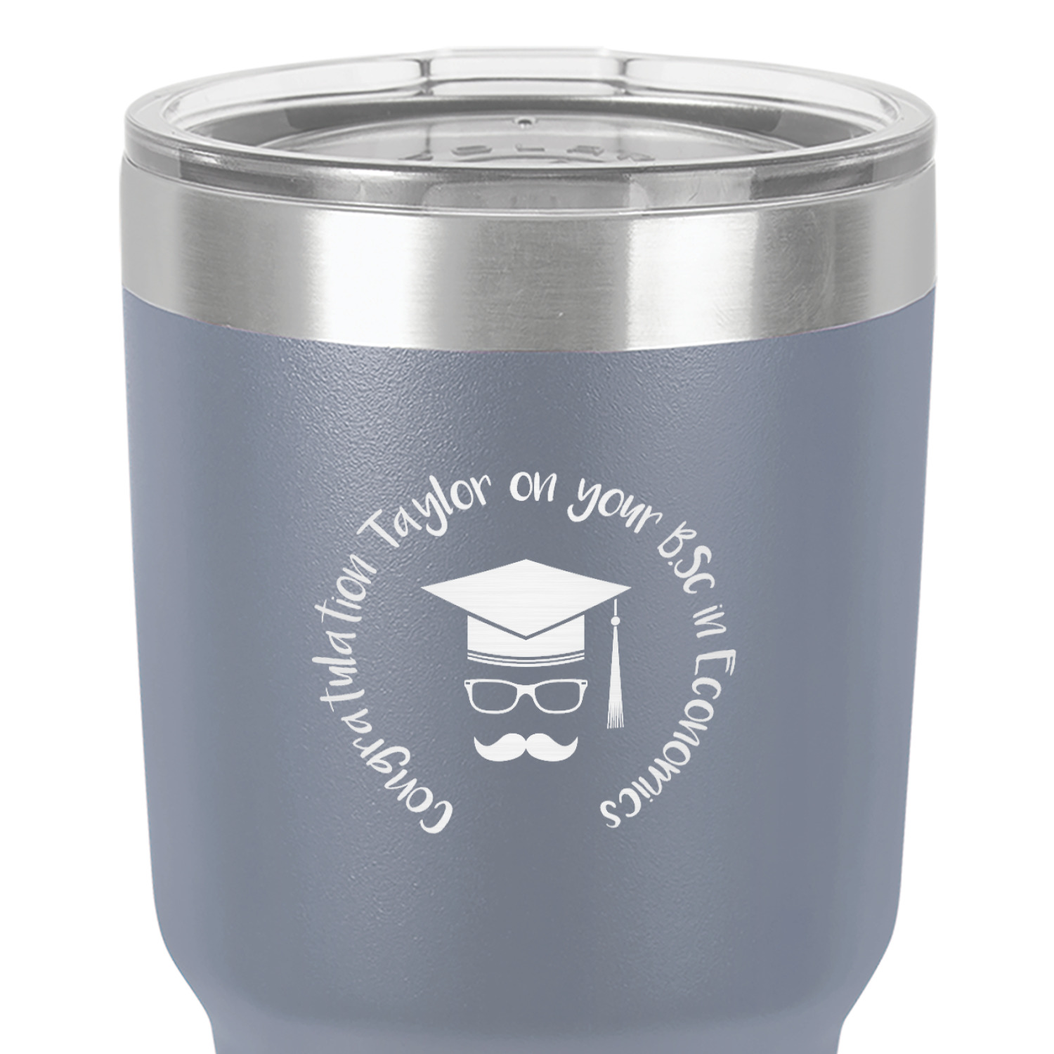 With our personalized 30 oz double wall stainless steel tumblers, you'll never have to settle for a plain, boring tumbler again! These tumblers will be a wonderful addition to your drinkware collection and will make those long commutes much brighter. Personalize one for yourself, or give these personalized tumblers as a gift to relatives, friends, or coworkers!