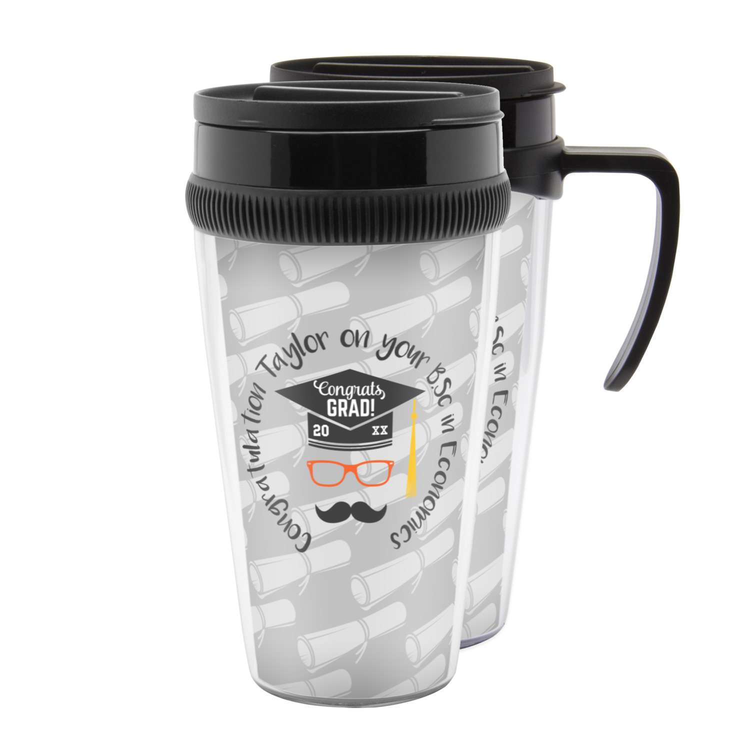 Keep your drink secure while on your daily commute with one of our personalized travel mugs! These travel mugs will add a splash of color and creativity to your kitchen counter-top, car cup holder, office desk, or wherever you choose to place them! With these custom mugs, you'll never have to settle for a boring, run-of-the-mill travel mug.