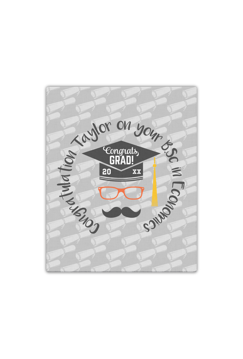 This whimsical and fun design makes the perfect graduation gift. We chose a tone on tone background with graduation scrolls and chose a light grey color. We chose graphic with circular text for our personalization style; change the text to suit your graduate. Customize the colors in the hipster graphic including the glasses, tassel and mustache color. We have other graduate backgrounds as well as graduate graphic in our system. So go ahead and change things to suit your graduate.