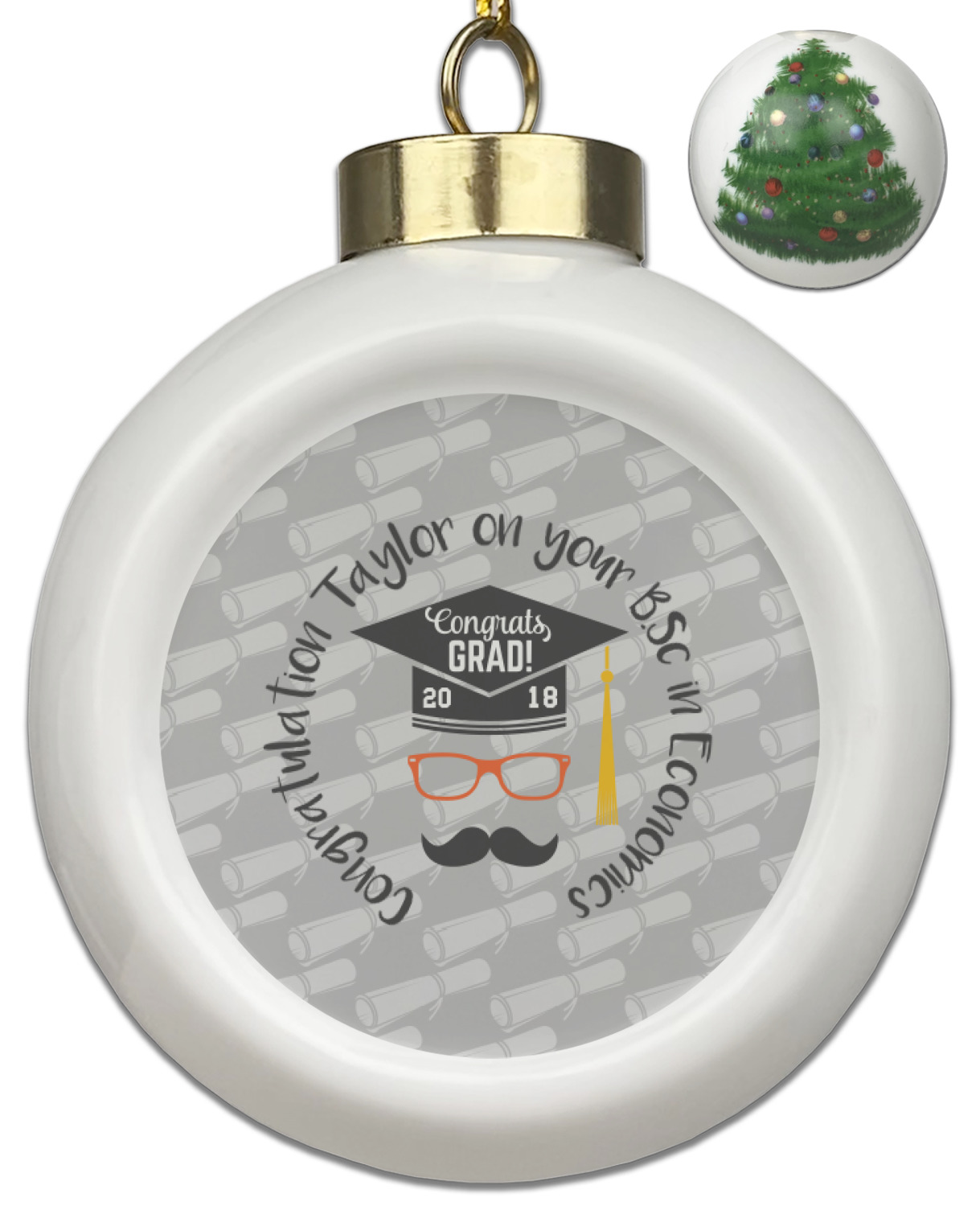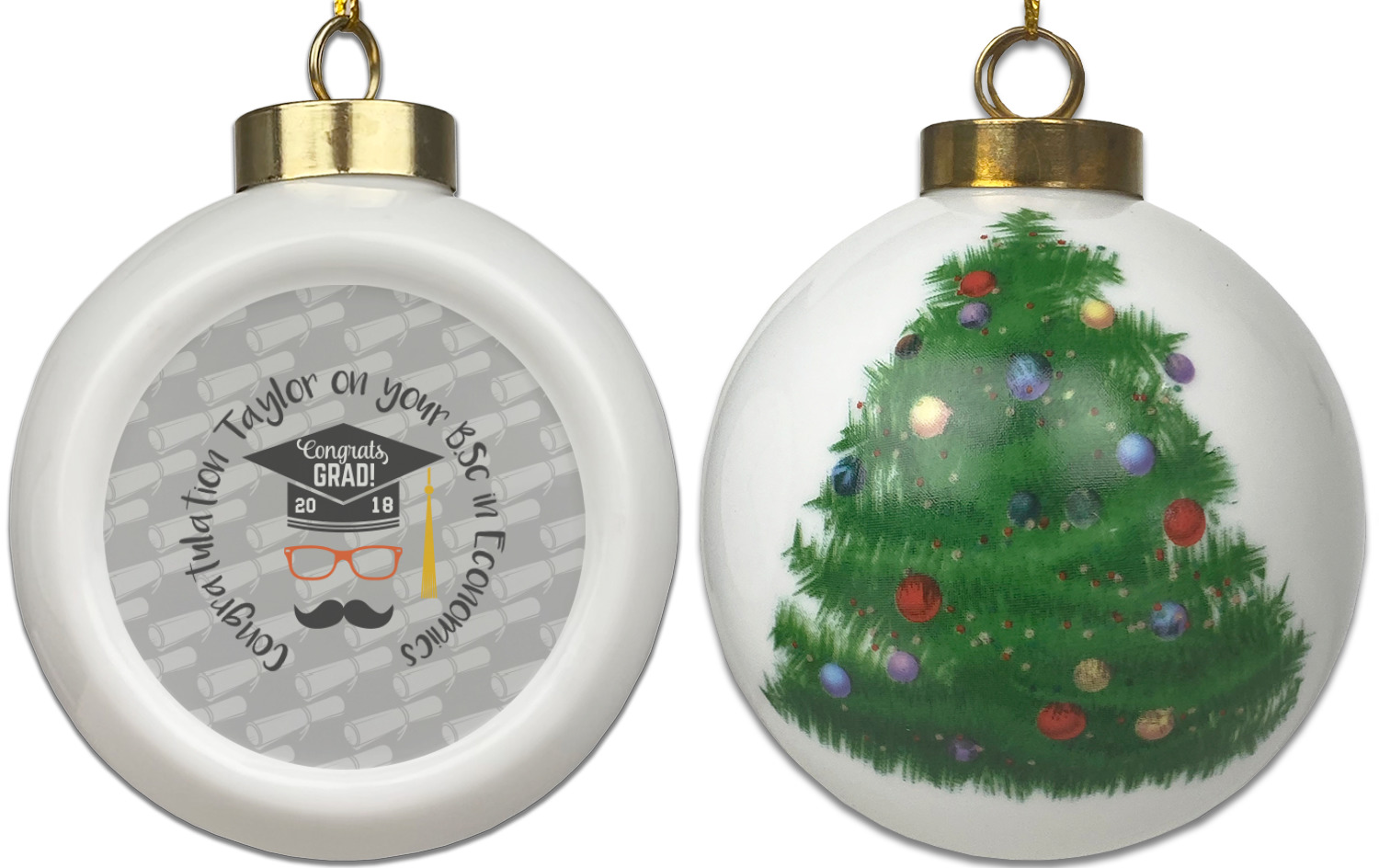 Our Christmas ornaments are a unique ceramic ball shape with a twist as it has a flat face to display your custom design! Select from one of our two design types - Christmas Tree or Poinsettia Garland - to adorn the curved back of your personal design. Each ornament measures 3H x 2.5W x 2D accompanied with a gold string accent for finishing touches to hang on your beautiful Christmas tree!
