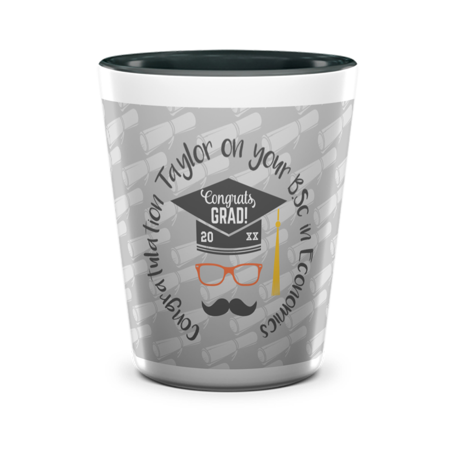 Made from ceramic these shot glasses are printed in full color with the design of your choice. These are a standard 1.5oz size and stand 2.25" tall. Available in a full white ceramic or a two-tone with a black color inside the shot glass. Buy a single or a set of 4, all of which can be designed separately to get you just what you want and need.