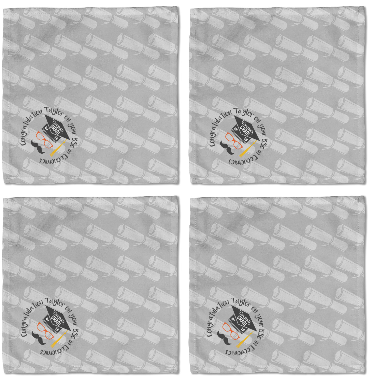 Each customizable cloth napkin is a polyester material guaranteed for long-term use. Since our napkins are cloth, it serves as a great reusable and eco-friendly dining decor. We sell personalized napkins individually or as a set of 4! Print your own unique design on all four napkins, or create four individual designs for each napkin! We offer two different napkin sizes - Cocktail napkins (approx. 10 x 10) and Dinner napkins (approx. 20 x 20). We print your design on one side, perfect for displaying your custom designed lunch napkins in any fold or table setting!