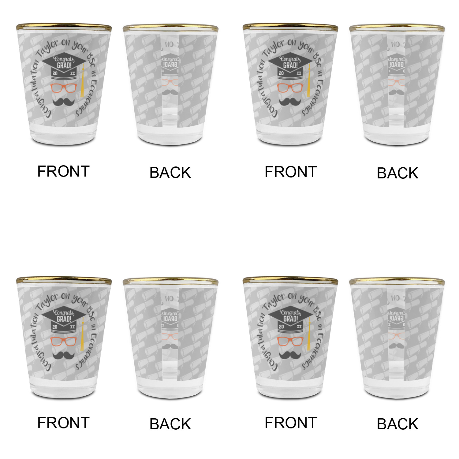 Available in plain frosted glass or frosted glass with a gold rim, you are sure you be able to get a shot glass to match your style. Buy a single or a set of 4, all of which can be designed separately to get you just what you want and need.