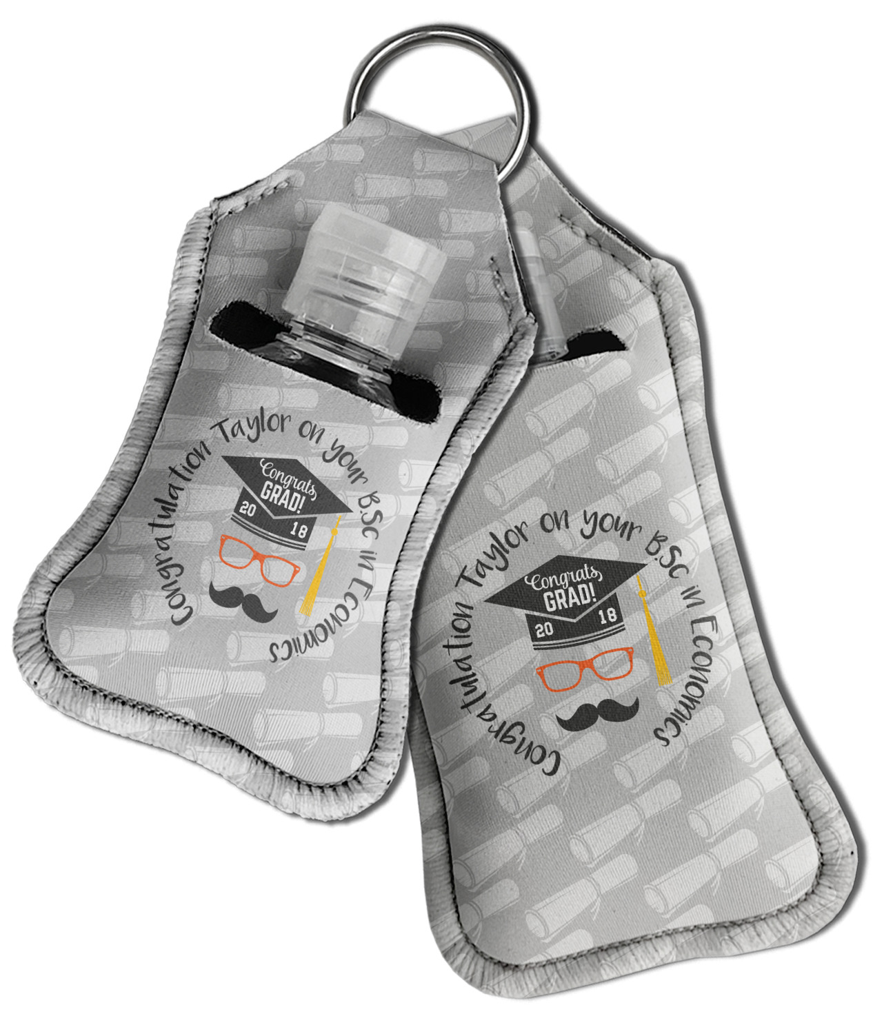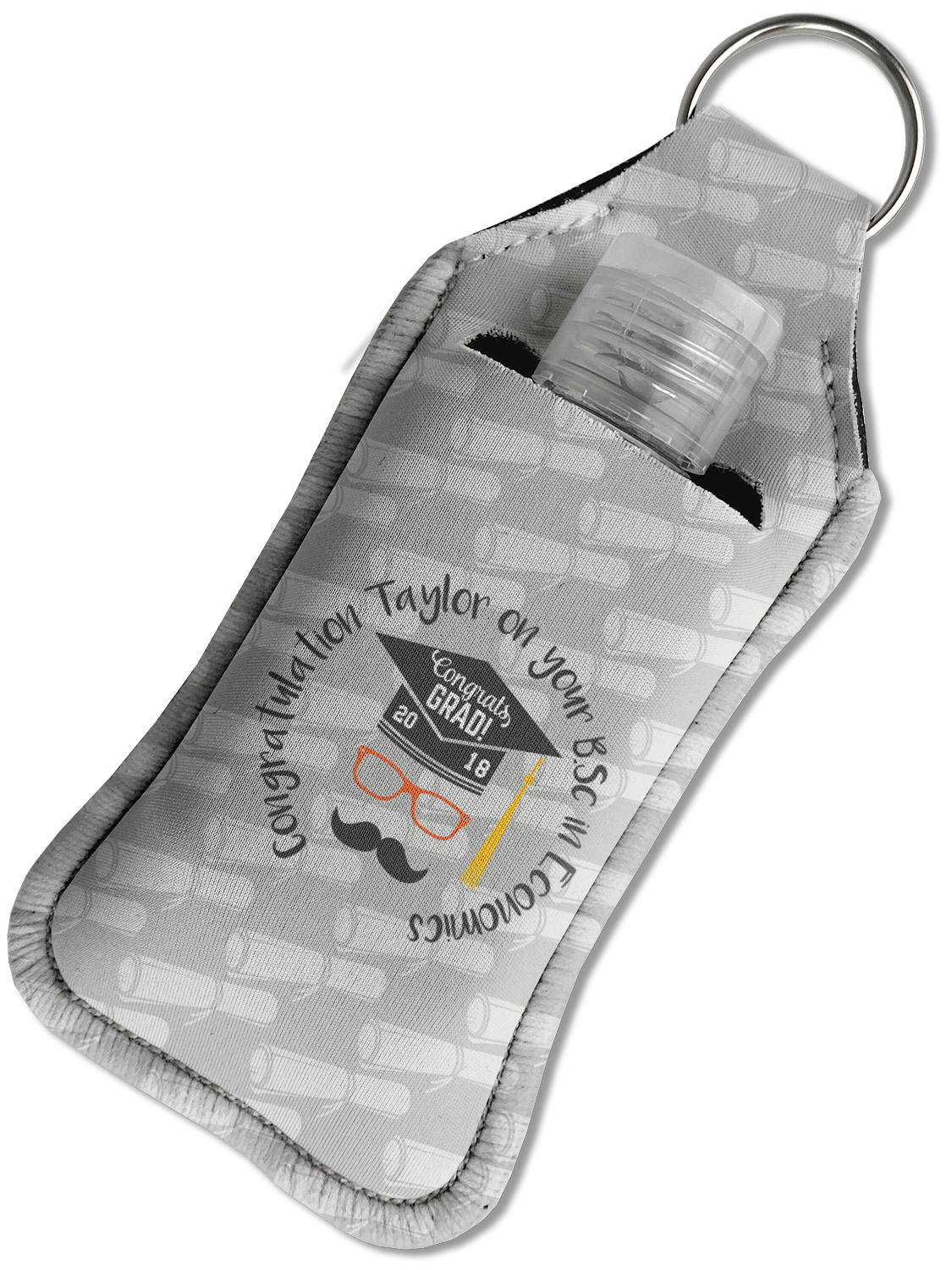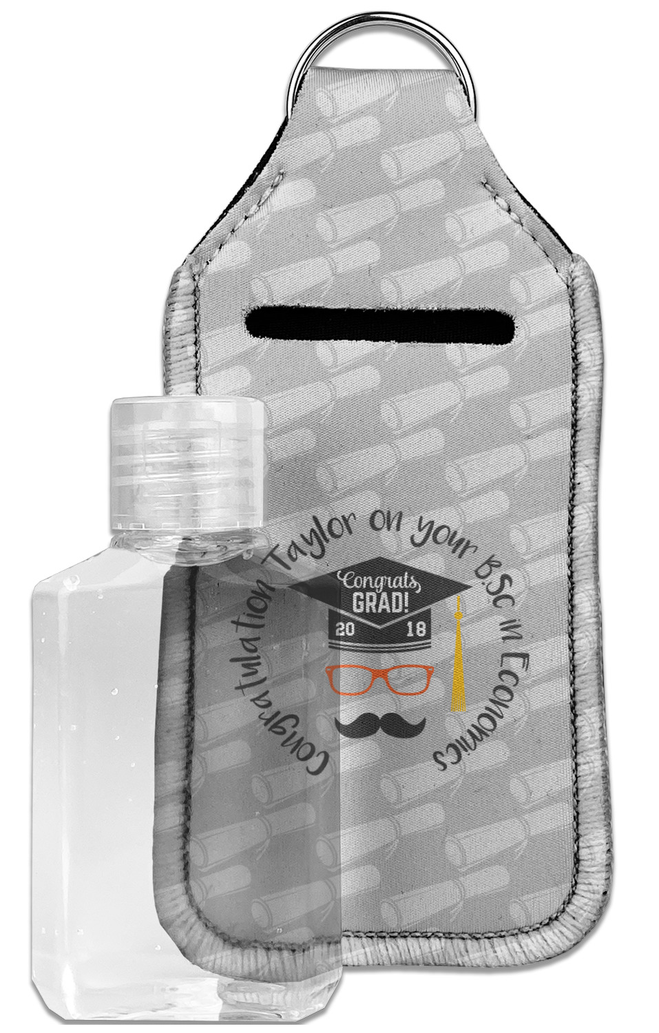 Each hand sanitizer holder comes with its own empty travel-sized, refillable hand sanitizer sure to fit snug in your customized sanitizer case! Our hand sanitizer cases are a durable, yet soft neoprene material sure to last any daily activities or travel agenda. Customize and personalize a hand sanitizer bottle holder with one of our two sizes - small (4.25" x 2.25") or large (5.5" x 2.5"). Each travel sanitizer holder comes with a keyring for attachment on bags, keys, or more!