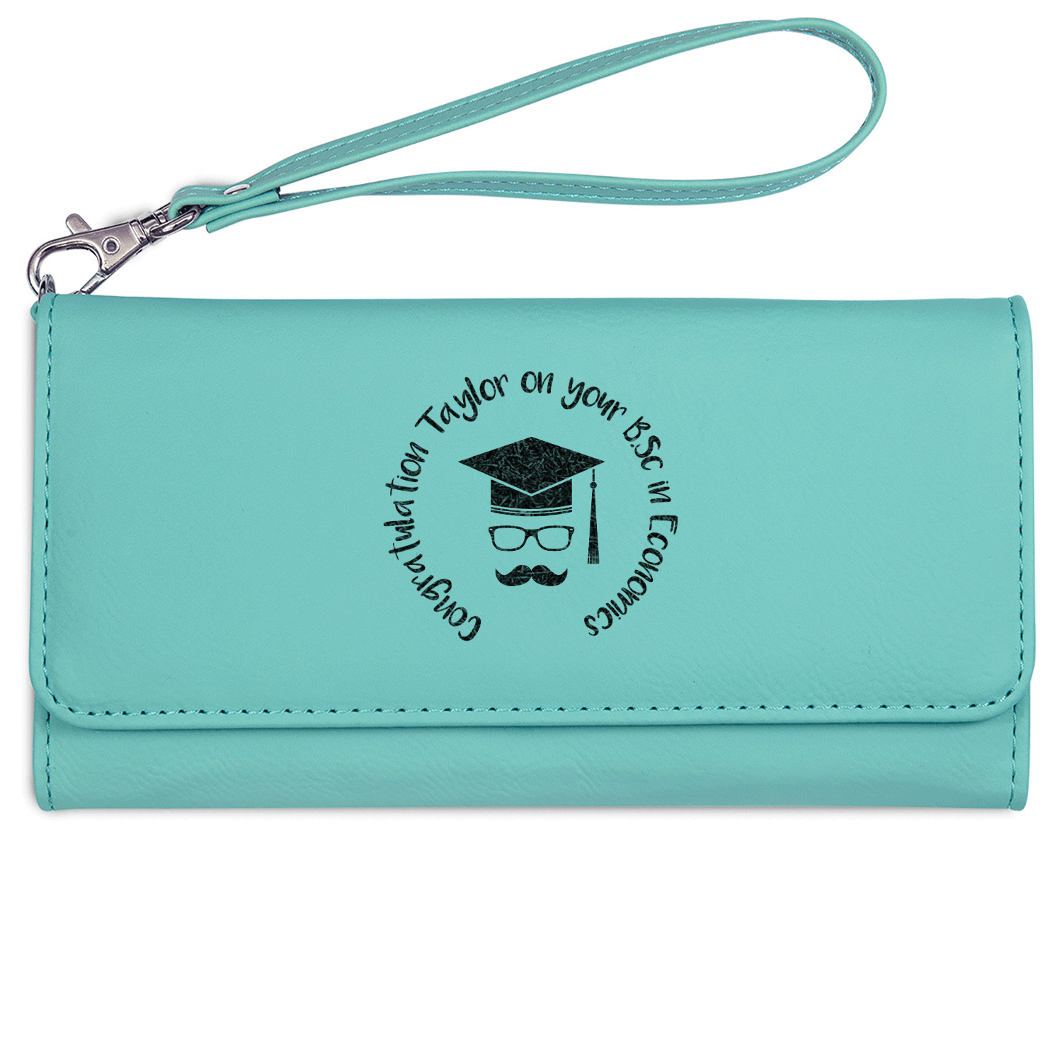 These personalized ladies leather wallets are available in 2 colors - rawhide / cognac and teal.