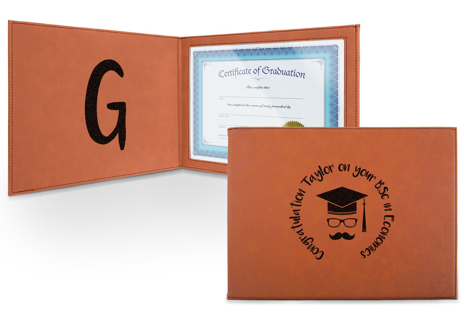 Searching for the perfect gift for a recent graduate in your life? What better gift than a gorgeous, leatherette certificate holder? These custom certificate folders display your diploma or certificate, while protecting it within a leatherette casing. These holders can even be used for the certificates from other achievements!