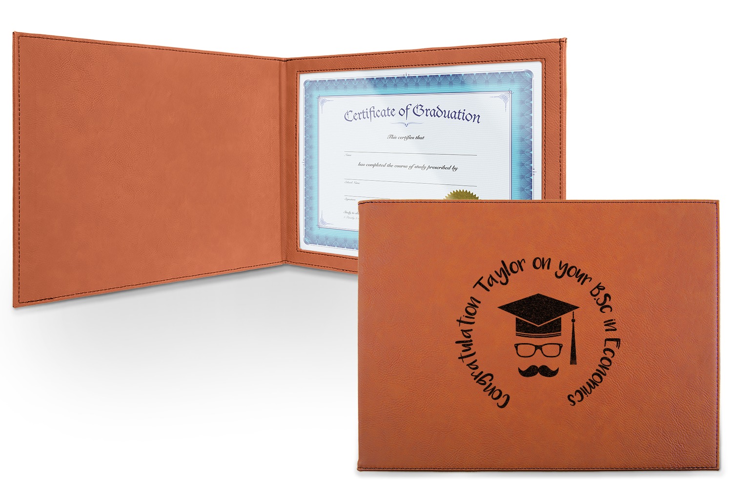 Searching for the perfect gift for a recent graduate in your life? What better gift than a gorgeous, leatherette certificate holder? These custom certificate folders display your diploma or certificate, while protecting it within a leatherette casing. These holders can even be used for the certificates from other achievements!