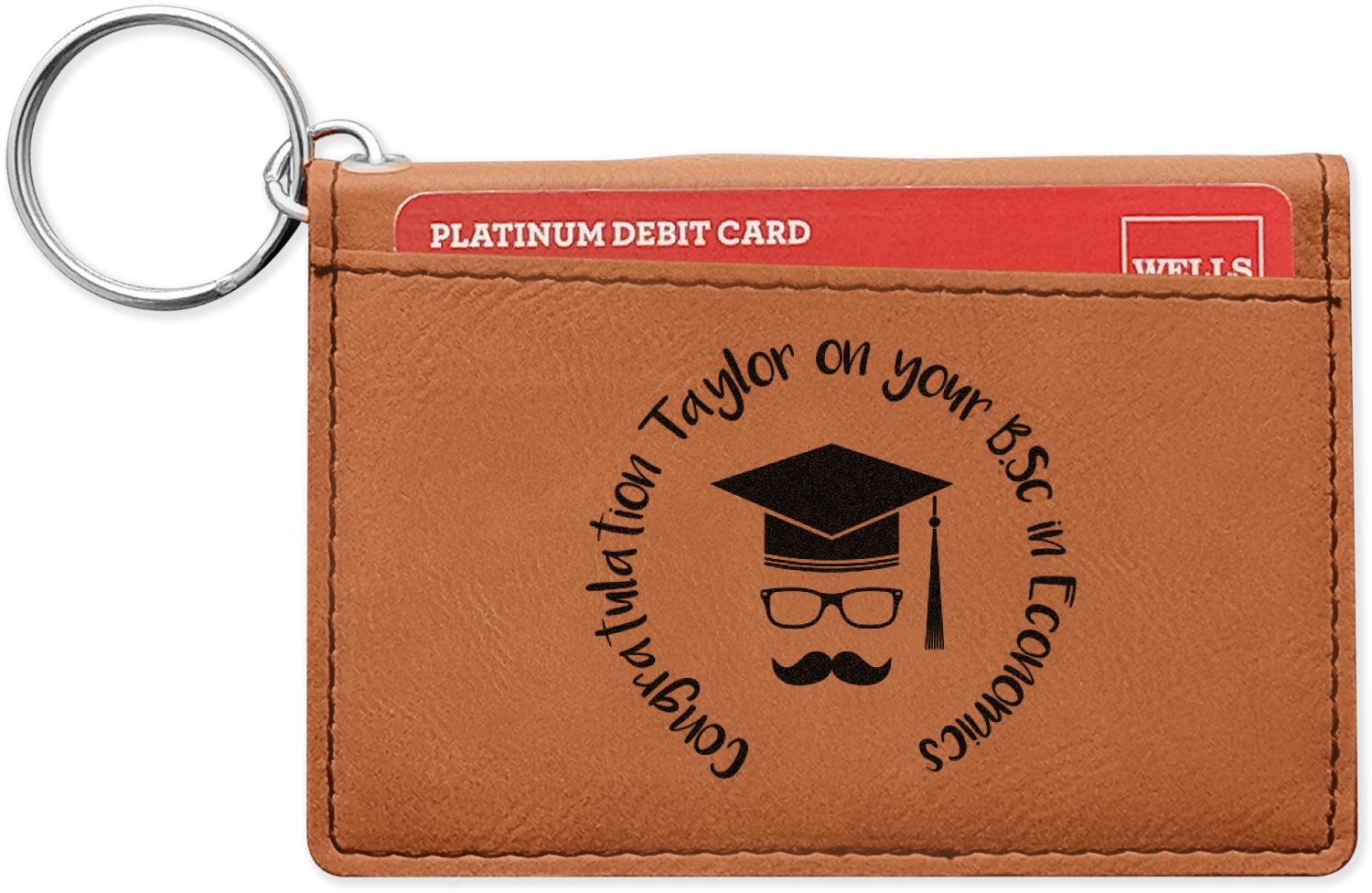Interested in more leatherette or leather accessories? Check out our Apparel and Accessories department, where you can also personalize our phone wallets and money clips. If you're looking for customizable keychains to add to your keyring card holder, have a look at our round, heart, and diamond keychains. These keychains and more can be found in our Car and Automotive category.