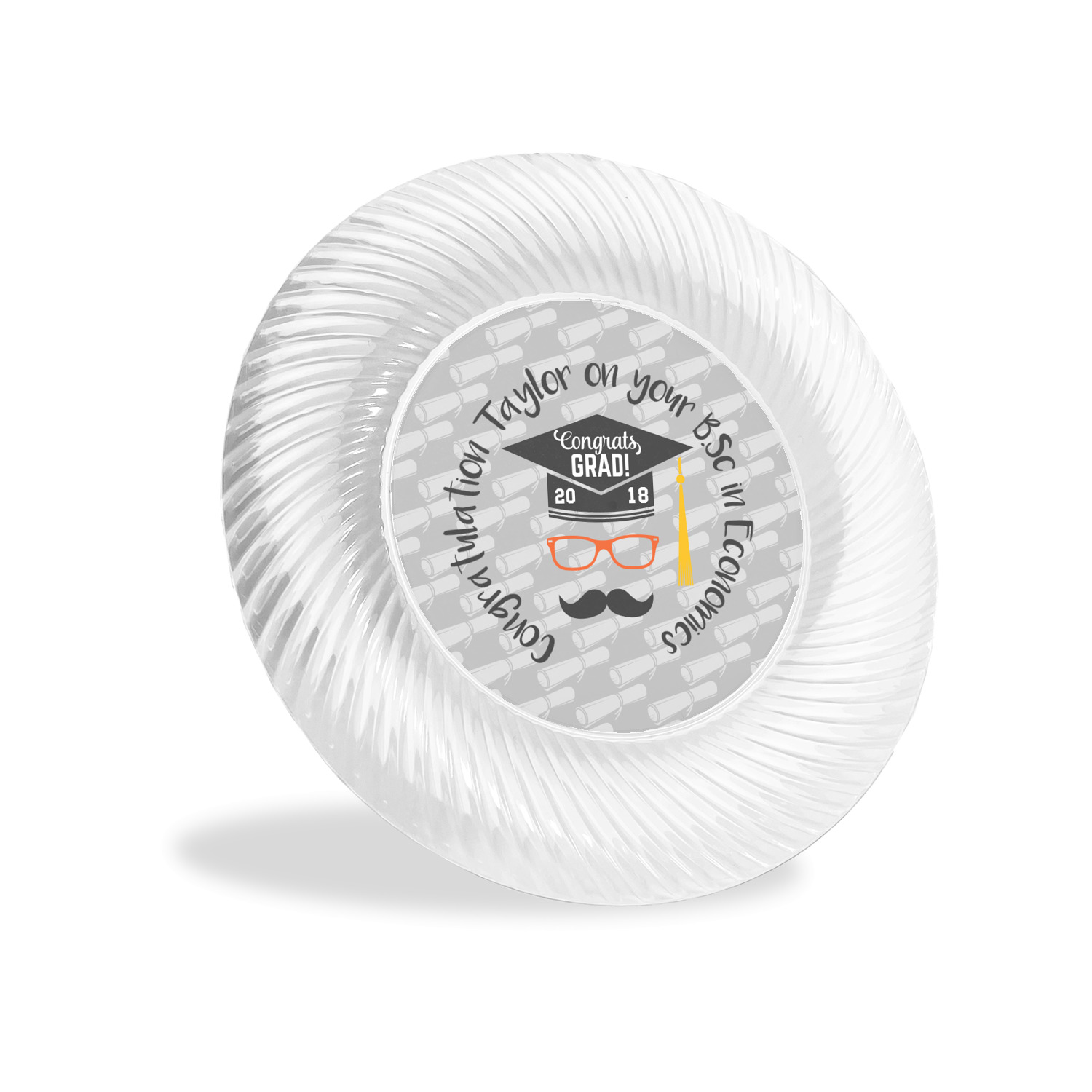 Made from a beautiful clear plastic plate as a base, your design is printed to the underside of the plate. The outside of the plate has a classic swirl texture to it for a high quality look and feel.