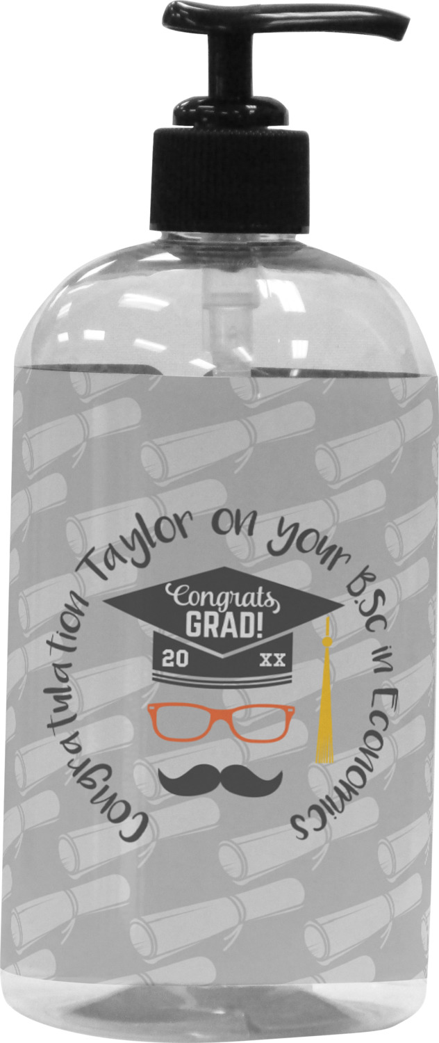 We adhere and wrap your custom printed design around the clear plastic bottle; there is a slight gap at the back for you to see the liquid level. Your design is printed on high gloss vinyl with eco-solvent inks and completely waterproof and will not fade or deteriorate over time. The vinyl is machine cut and adhered by hand to the clear plastic bottle.