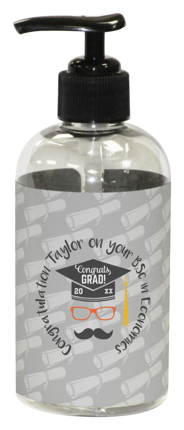 This whimsical and fun design makes the perfect graduation gift. We chose a tone on tone background with graduation scrolls and chose a light grey color. We chose graphic with circular text for our personalization style; change the text to suit your graduate. Customize the colors in the hipster graphic including the glasses, tassel and mustache color. We have other graduate backgrounds as well as graduate graphic in our system. So go ahead and change things to suit your graduate.