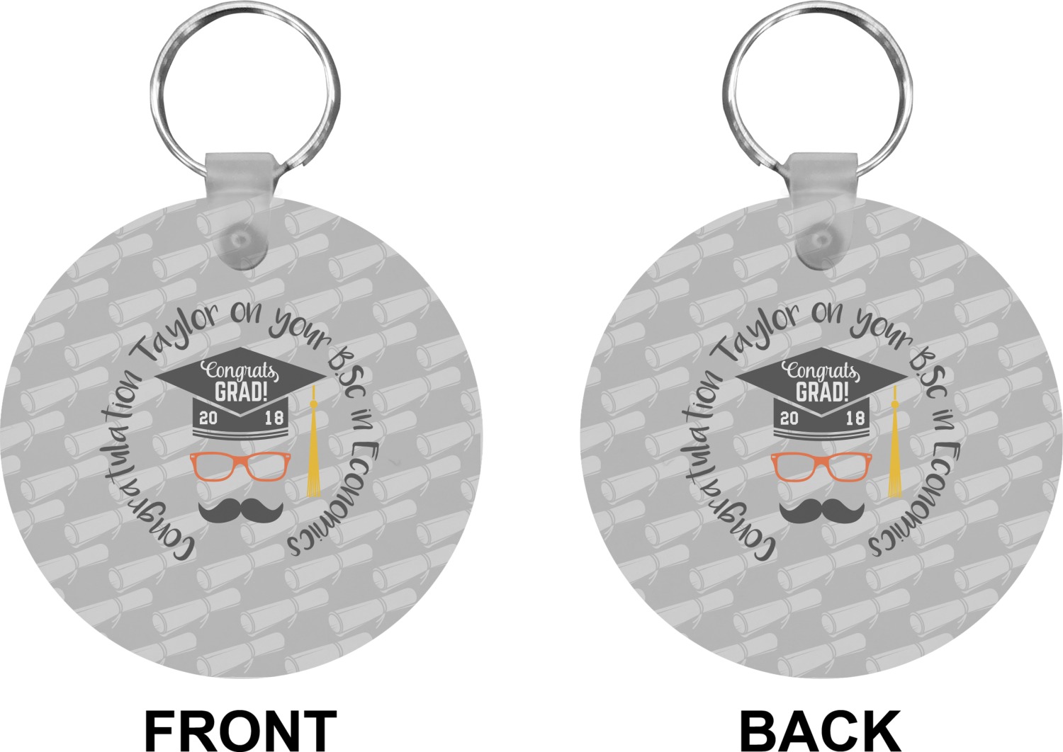Our personalized keychains attach to the included metal, split key ring with a plastic, removable snap. Since a metal ring is included with your purchase, you have the liberty to keep your keys together on the ring, with or without your unique keychain. We offer this keychain in three different shapes: circle, heart, or diamond. We print your personalized design(s) on both sides of the key chain, and the surface has a glossy, reflective finish that only emphasizes your design. Each keychain is approximately 2.25 by 2.25 inches.