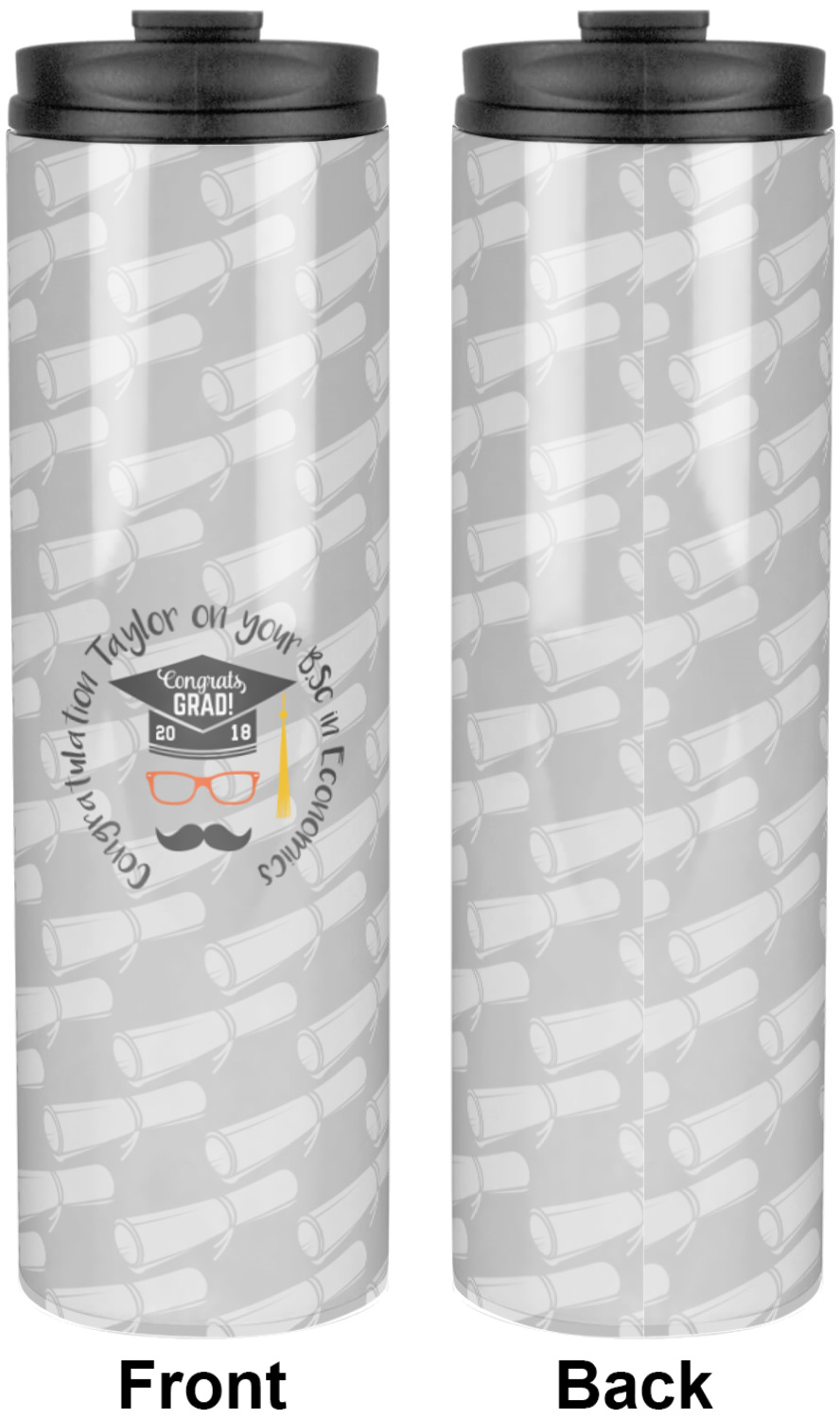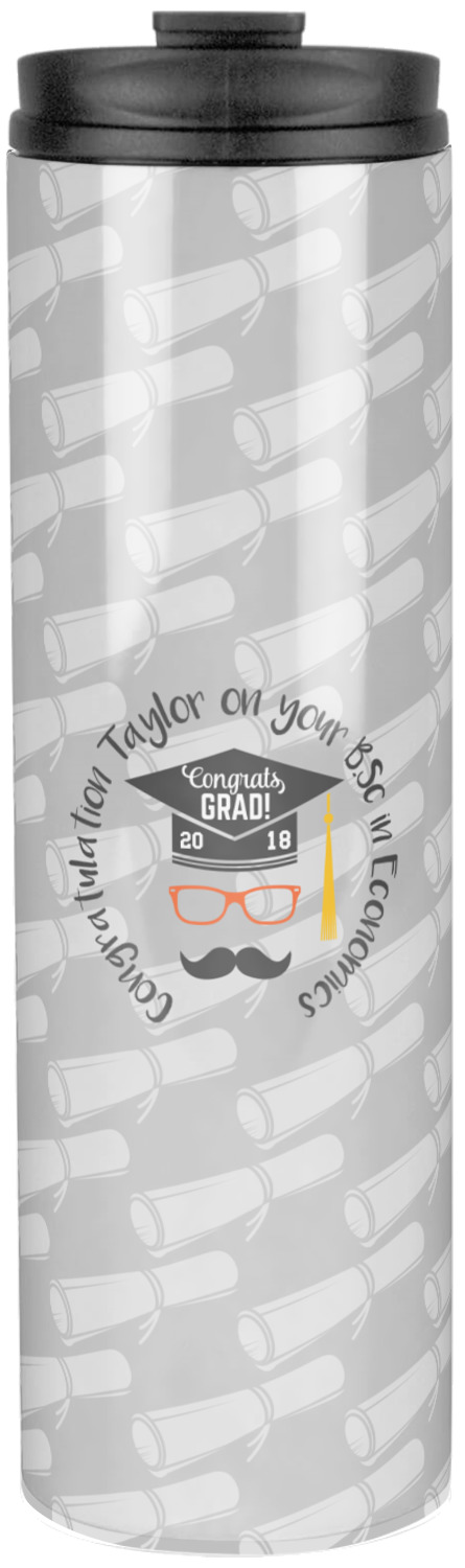 Sip your favorite drink on the go with your own custom stainless steel tumbler! Our slim cylinder shape is perfect for holding your drink in hand, in your purse, or in your backpack! This sleek and modern tumbler is a perfect gift for coffee and tea lovers keeping their drinks just the right temperature throughout the day! We offer two sizes, a 16 oz. or 20 oz., to personalize. Browse and customize or design or create your own with our online design studio!