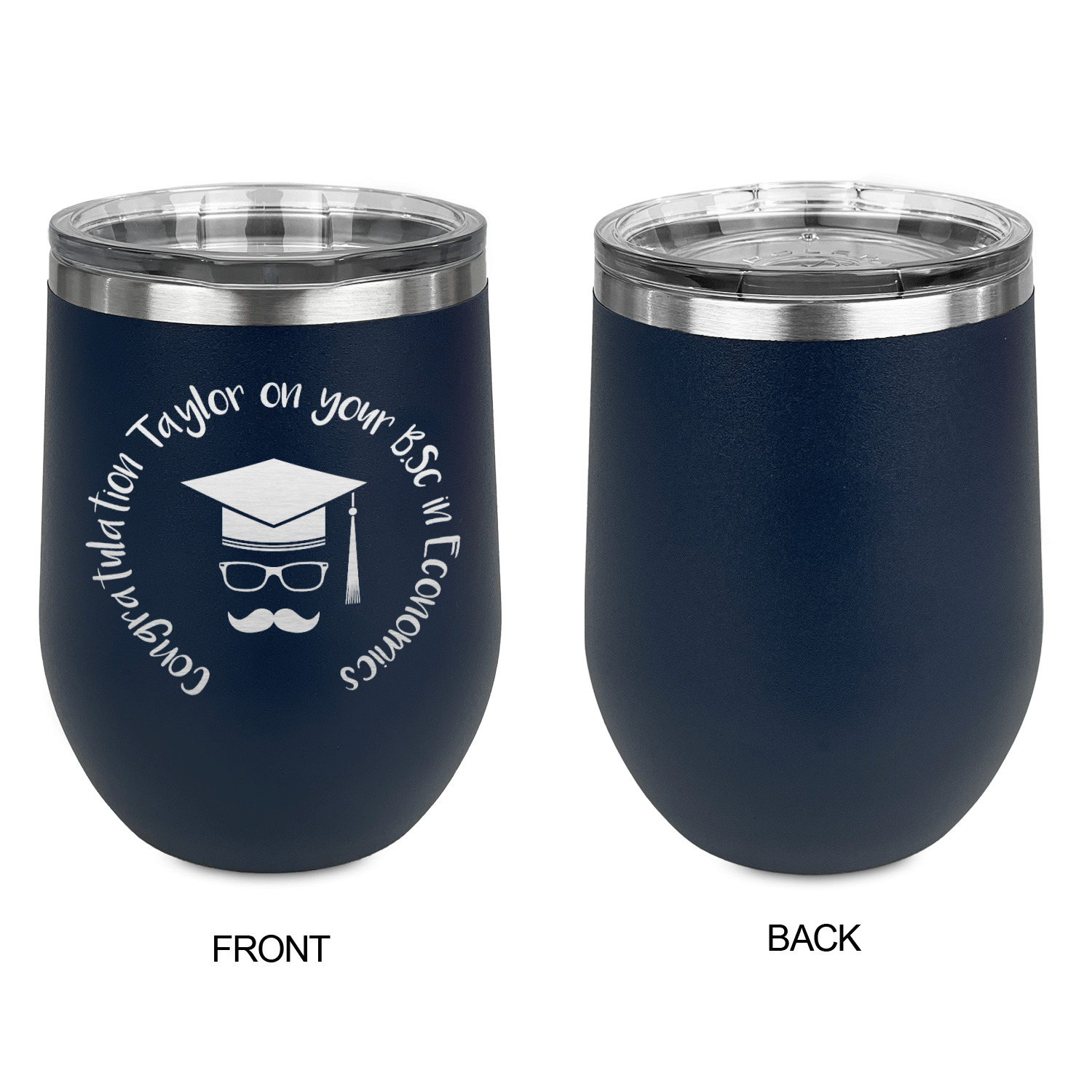 Design your wine tumbler with a cool graphic or quote. Even put your initials or monogram! These cups are laser engraved, which looks extra sharp on the metal tumbler.