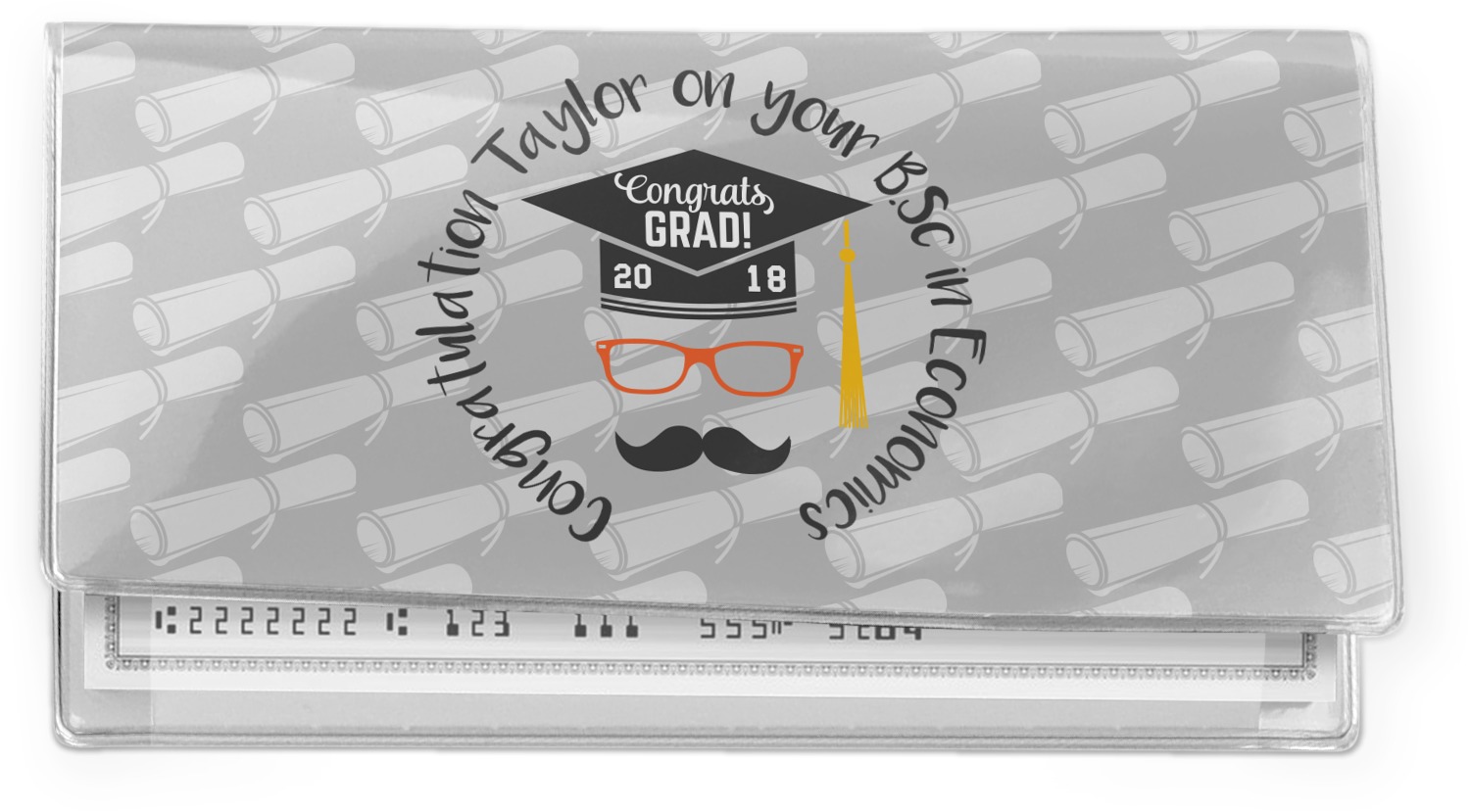 This checkbook cover is a similar shape and size to what the bank sends, but is a million times better. It is made of clear vinyl to give your cover a sturdier and more durable feeling. This checkbook cover has two large slots to keep your checks and your transaction register. It comes with all the necessary tabs to put between your checks as well. It easily folds closed so that you can see your design on the front and the back. It is the perfect way to stay slim and stylish at the same time.