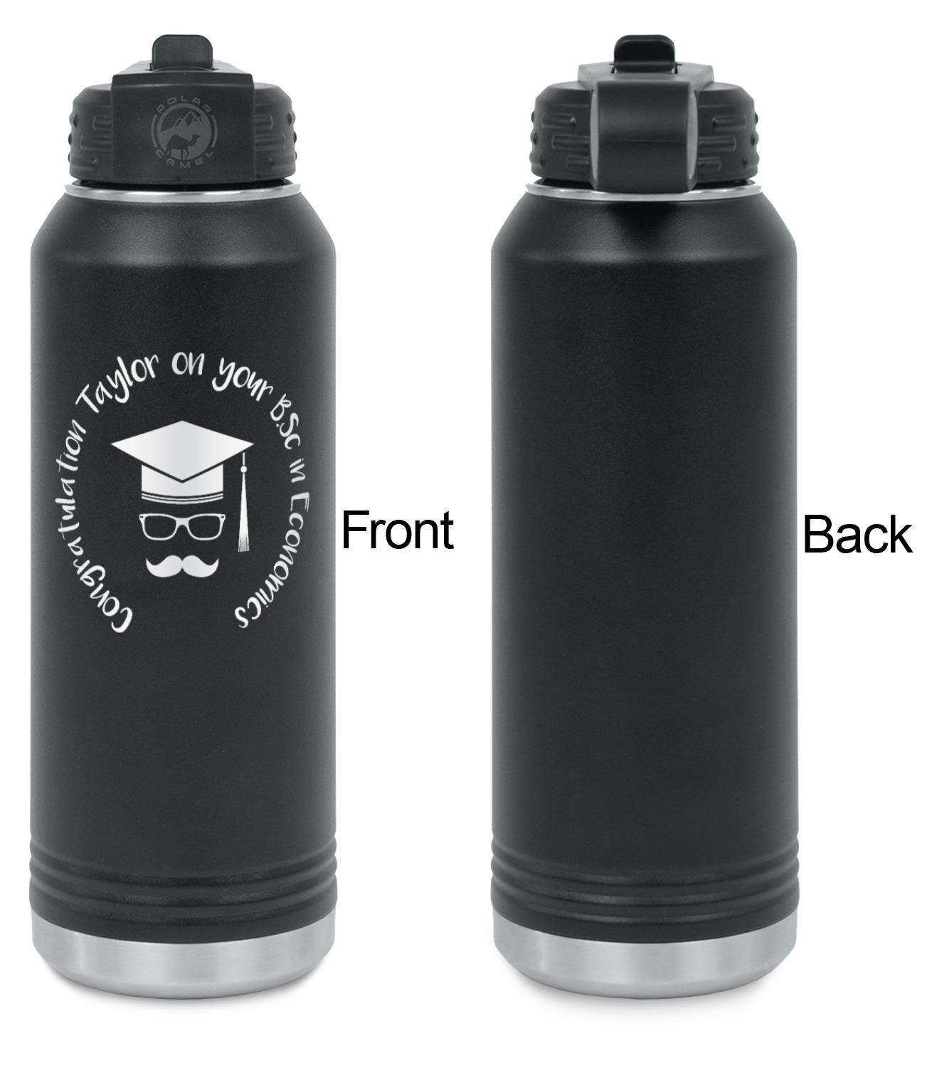 Our laser engraved stainless steel water bottles are designed for on the go lifestyle. These water bottles are perfect for the gym, the office, traveling, camping, hiking etc.
