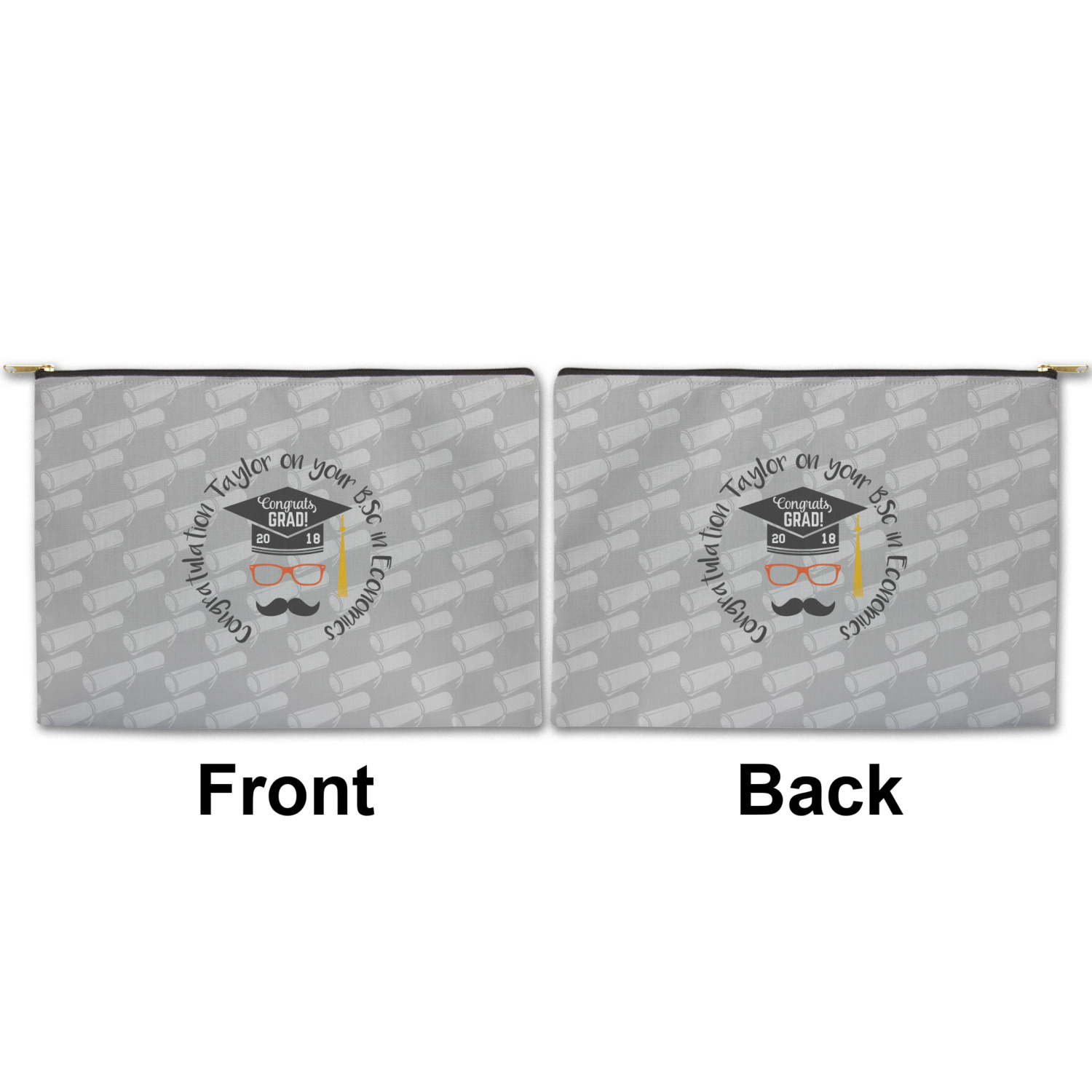 You can design both the front and the back of the pouch - same design, two complementary designs or two totally different designs - the choice is yours! We offer many different personalization styles i.e. name, name & initial, monograms - so the choice to personalize is also yours.