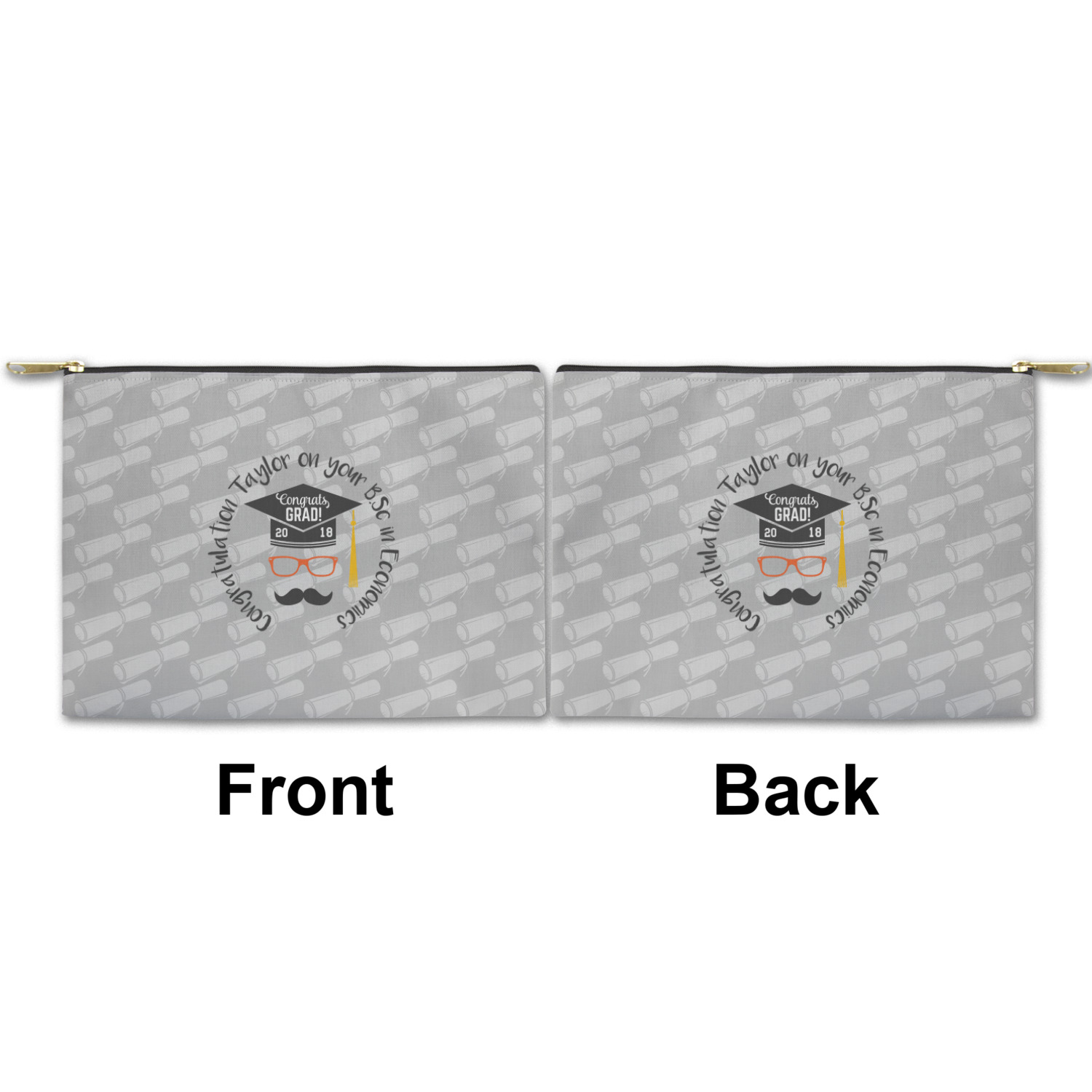 You can design both the front and the back of the pouch - same design, two complementary designs or two totally different designs - the choice is yours! We offer many different personalization styles i.e. name, name & initial, monograms - so the choice to personalize is also yours.
