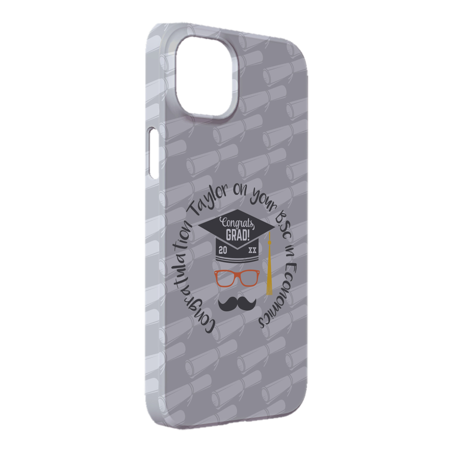 This whimsical and fun design makes the perfect graduation gift. We chose a tone on tone background with graduation scrolls and chose a light grey color. We chose graphic with circular text for our personalization style; change the text to suit your graduate. Customize the colors in the hipster graphic including the glasses, tassel and mustache color. We have other graduate backgrounds as well as graduate graphic in our system. So go ahead and change things to suit your graduate.