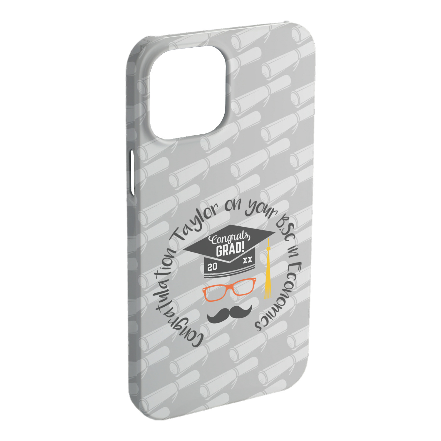 This whimsical and fun design makes the perfect graduation gift. We chose a tone on tone background with graduation scrolls and chose a light grey color. We chose graphic with circular text for our personalization style; change the text to suit your graduate. Customize the colors in the hipster graphic including the glasses, tassel and mustache color. We have other graduate backgrounds as well as graduate graphic in our system. So go ahead and change things to suit your graduate.