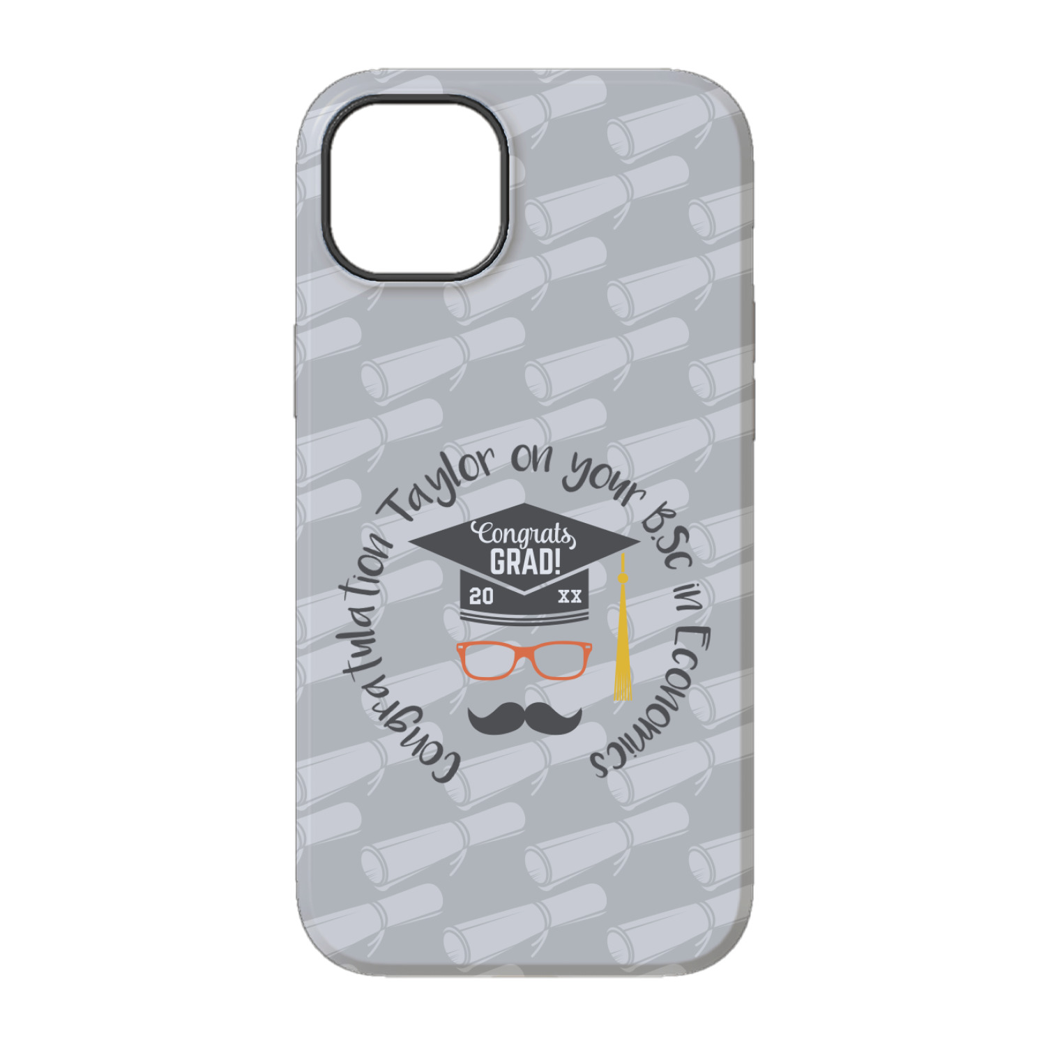 This whimsical and fun design makes the perfect graduation gift. We chose a tone on tone background with graduation scrolls and chose a light grey color. We chose graphic with circular text for our personalization style; change the text to suit your graduate. Customize the colors in the hipster graphic including the glasses, tassel and mustache color. We have other graduate backgrounds as well as graduate graphic in our system. So go ahead and change things to suit your graduate.