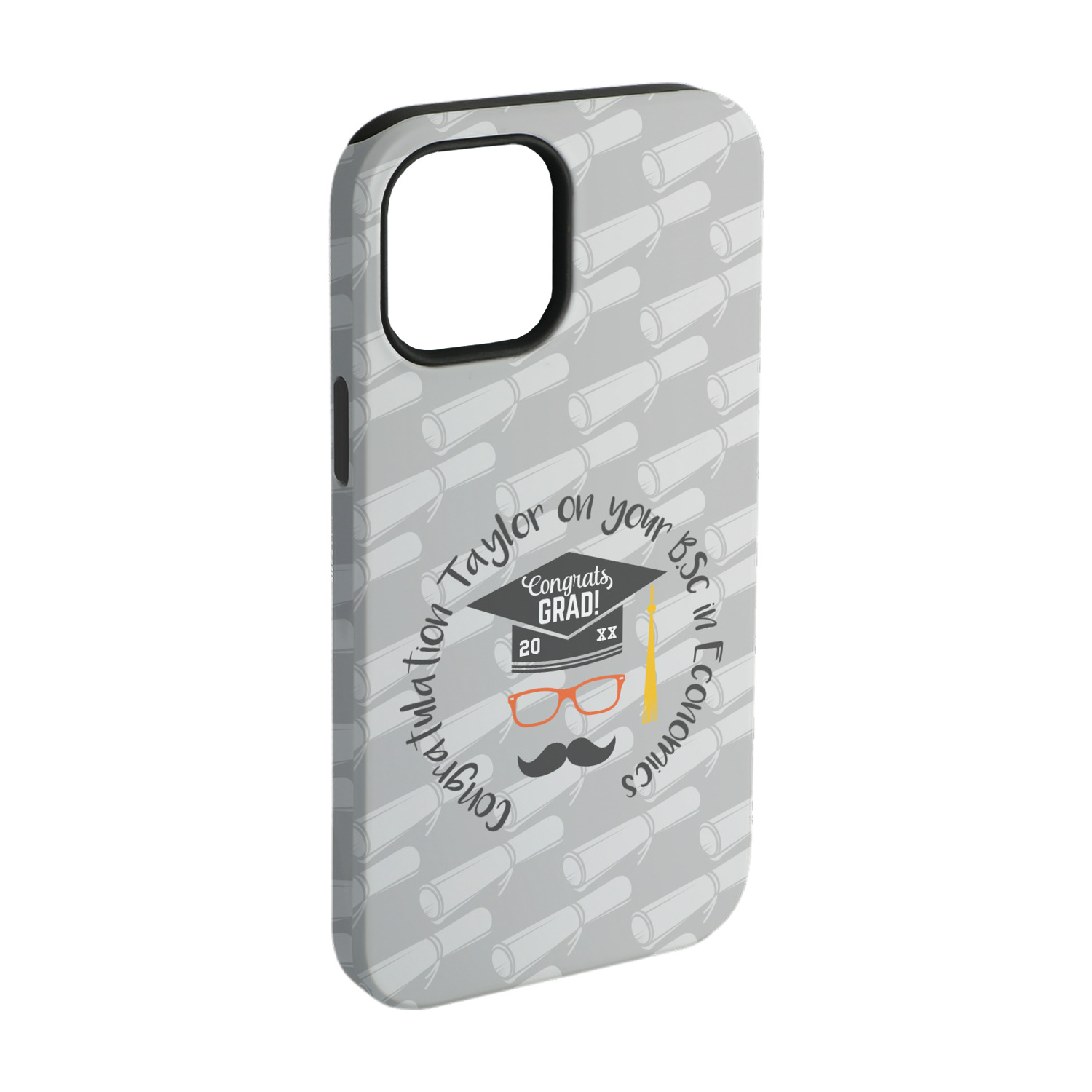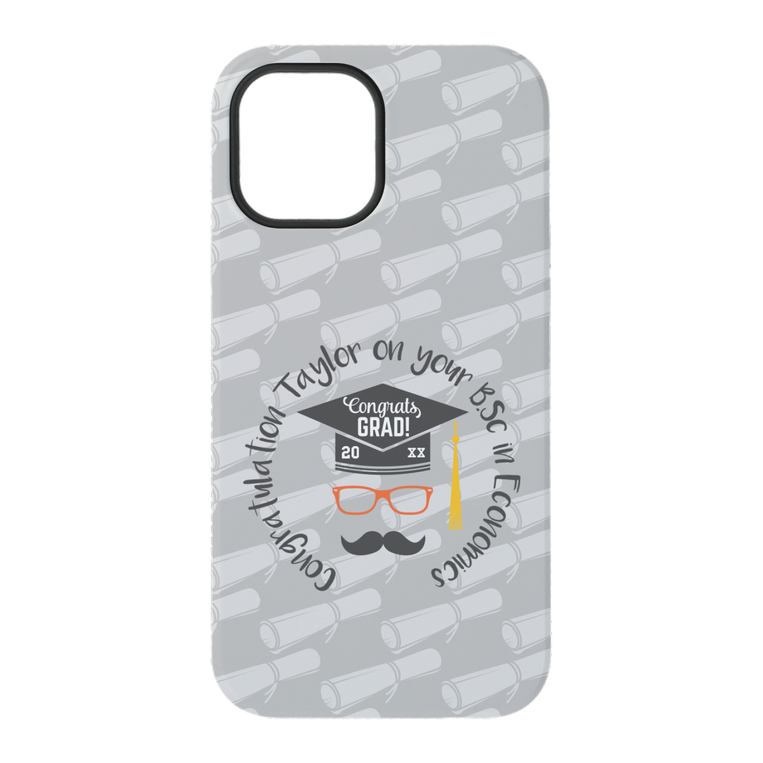 This whimsical and fun design makes the perfect graduation gift. We chose a tone on tone background with graduation scrolls and chose a light grey color. We chose graphic with circular text for our personalization style; change the text to suit your graduate. Customize the colors in the hipster graphic including the glasses, tassel and mustache color. We have other graduate backgrounds as well as graduate graphic in our system. So go ahead and change things to suit your graduate.