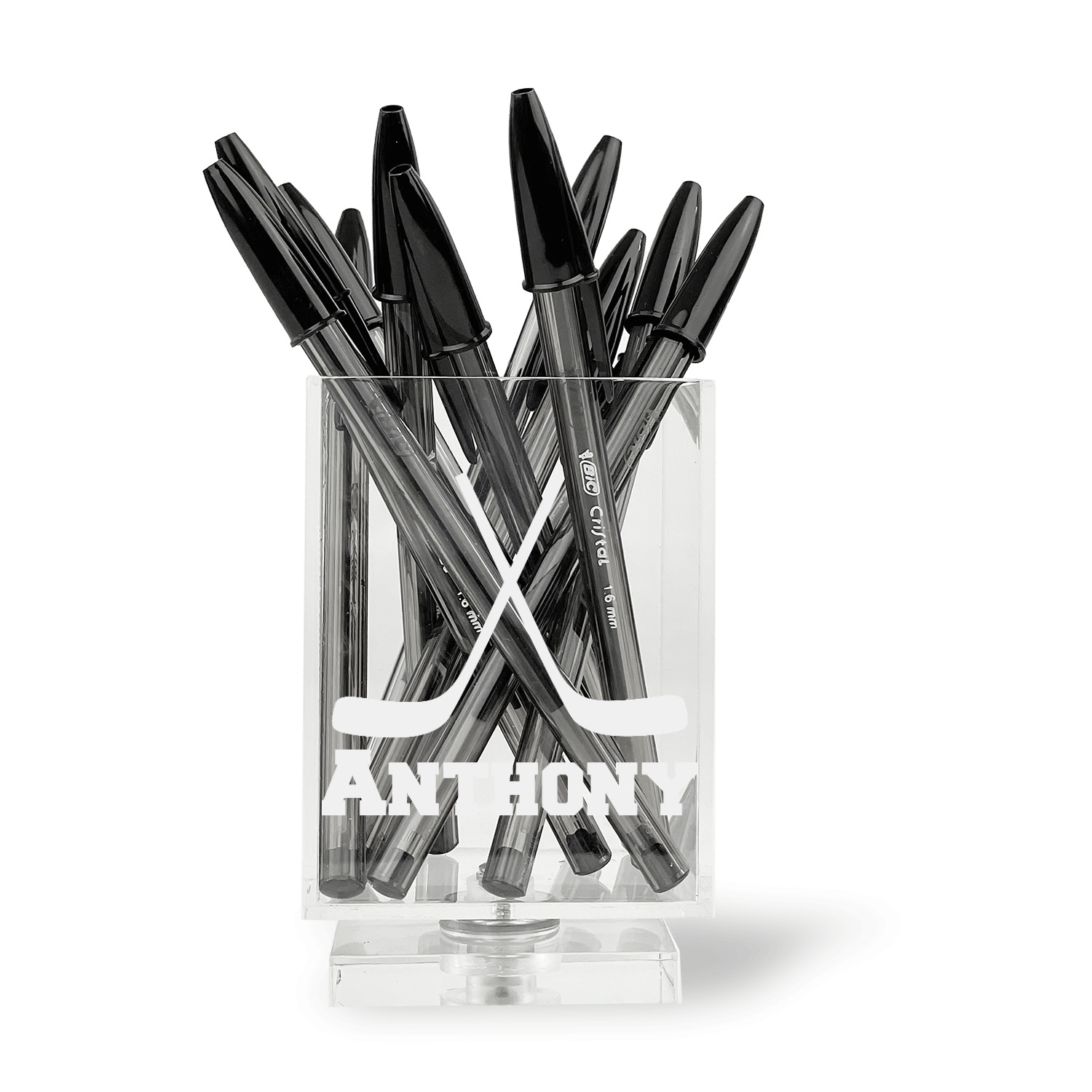 Add a great accessory to your desk with one of these acrylic pen holders. A great way to store your writing utensils, and personalized to suit your needs.