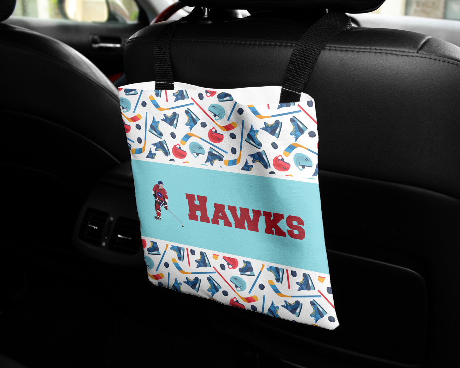 These car back seat organizers are sturdy tote-like bags, fabricated from a robust polyester, and features a single handle on the back side. The strap features an attachable velcro for easy attachment to headrests, grocery carts, car seats, and more. Simply undo the velcro, loop the strap around the headrest, reattach the velcro, and let the organizer hang from the front seat. These car organizers are the perfect means of increasing your backseat's legroom, while storing multiple items in one place for better accessibility. Each car back seat organizer measures at 10 by 10 inches, and features your personalized design printed across its front and back.