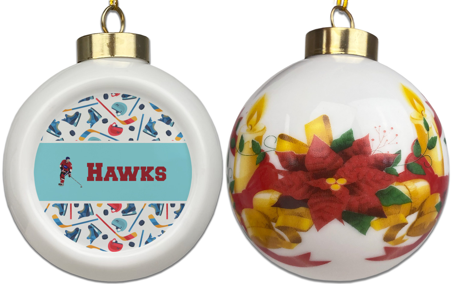 Our Christmas ornaments are a unique ceramic ball shape with a twist as it has a flat face to display your custom design! Select from one of our two design types - Christmas Tree or Poinsettia Garland - to adorn the curved back of your personal design. Each ornament measures 3H x 2.5W x 2D accompanied with a gold string accent for finishing touches to hang on your beautiful Christmas tree!