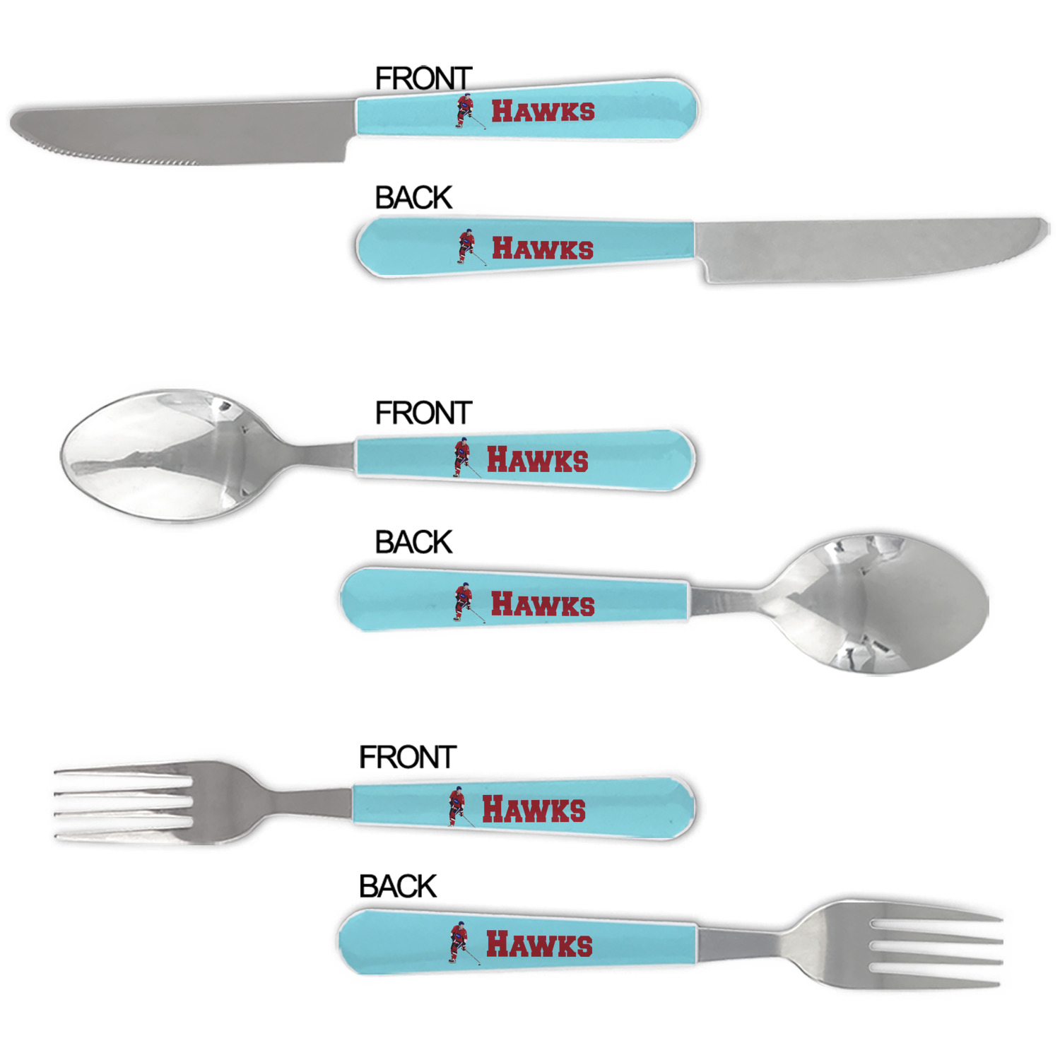 One of those items we all use on a daily basis and never give it much thought - cutlery. Having your own customized set of cutlery adds that special touch. A great addition to our custom plates and drinking pint glasses, this flatware set can be made in the same patterns to match.