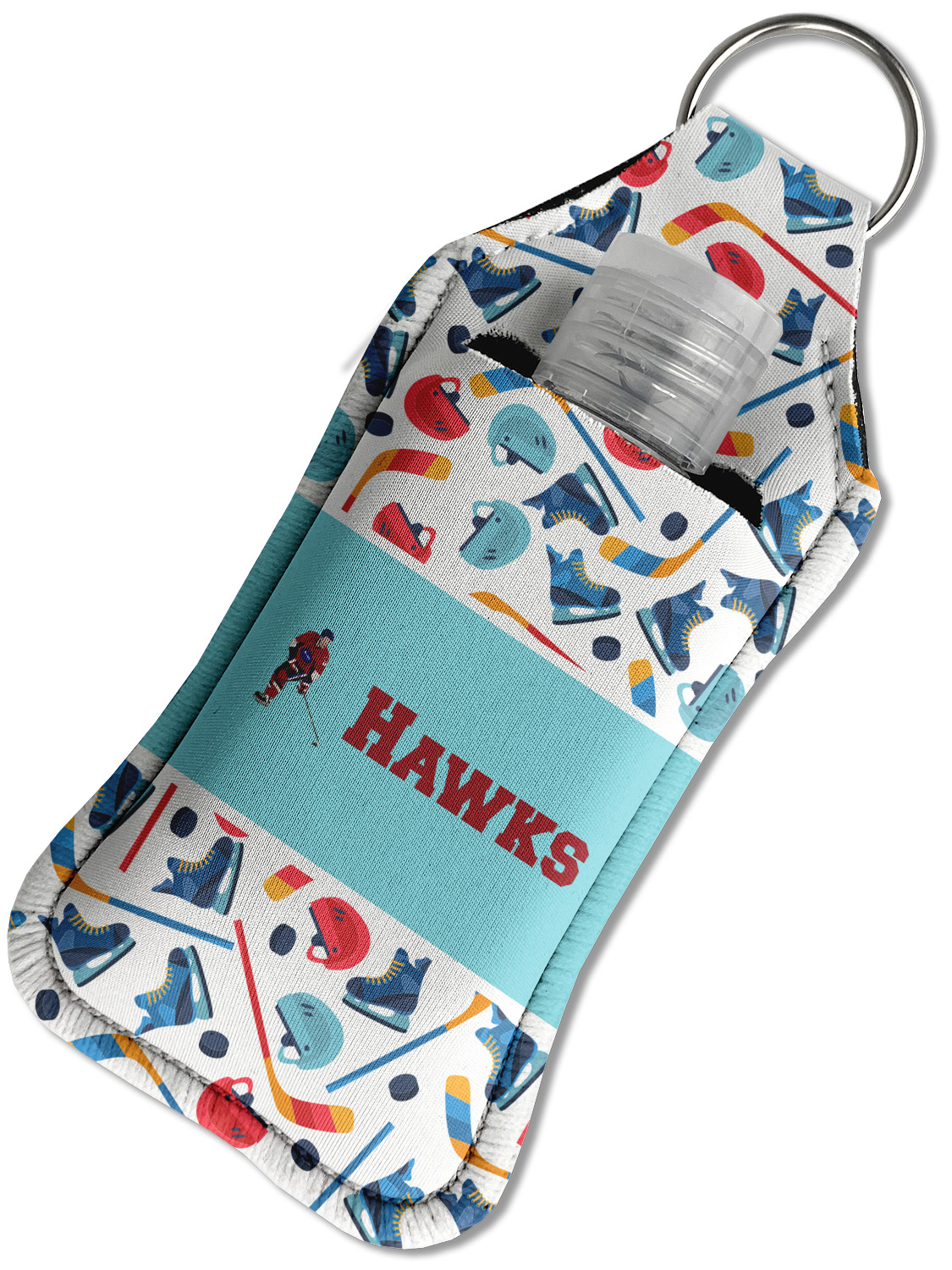 Each hand sanitizer holder comes with its own empty travel-sized, refillable hand sanitizer sure to fit snug in your customized sanitizer case! Our hand sanitizer cases are a durable, yet soft neoprene material sure to last any daily activities or travel agenda. Customize and personalize a hand sanitizer bottle holder with one of our two sizes - small (4.25" x 2.25") or large (5.5" x 2.5"). Each travel sanitizer holder comes with a keyring for attachment on bags, keys, or more!